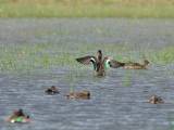 В сентябре я была на о. Ольхон. Там мне посчастливилось наблюдать успешную охоту черного коршуна на уток. Вначале всё было обыденно: утки резвились на воде, питались, спали, в небе привычно парил черный коршун. И вдруг всё мгновенно изменилось. Мы заметили поднявшуюся с шумом стаю уток и среди них коршуна, который пытался поймать кого-нибудь. И ему это удалось. Это оказался чирок-свистунок. Со своей добычей хищник отлетел к берегу и начал её терзать. Я попыталась подойти поближе, но коршун был настороже и не позволил приблизиться. Схватив чирка-свистунка, [...... read more ]