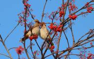Последний день календарной осени выдался солнечным и теплым. Дачным свиристелям раздолье на рябине. Не сразу обратила внимание на эту парочку. Самец очень старался-обрывал ягоды и приносил их своей подруге; та благосклонно принимала подношение.Птицы старались держаться рядышком, и наблюдать за ними было большим удовольствием. Поискала у Рябицева, но не нашла, в интернете же противоречивая информация о постоянстве пар у свиристелей. А еще не думала, что они настолько заранее готовятся к весеннему созданию прочной пары! [...... читать дальше ]