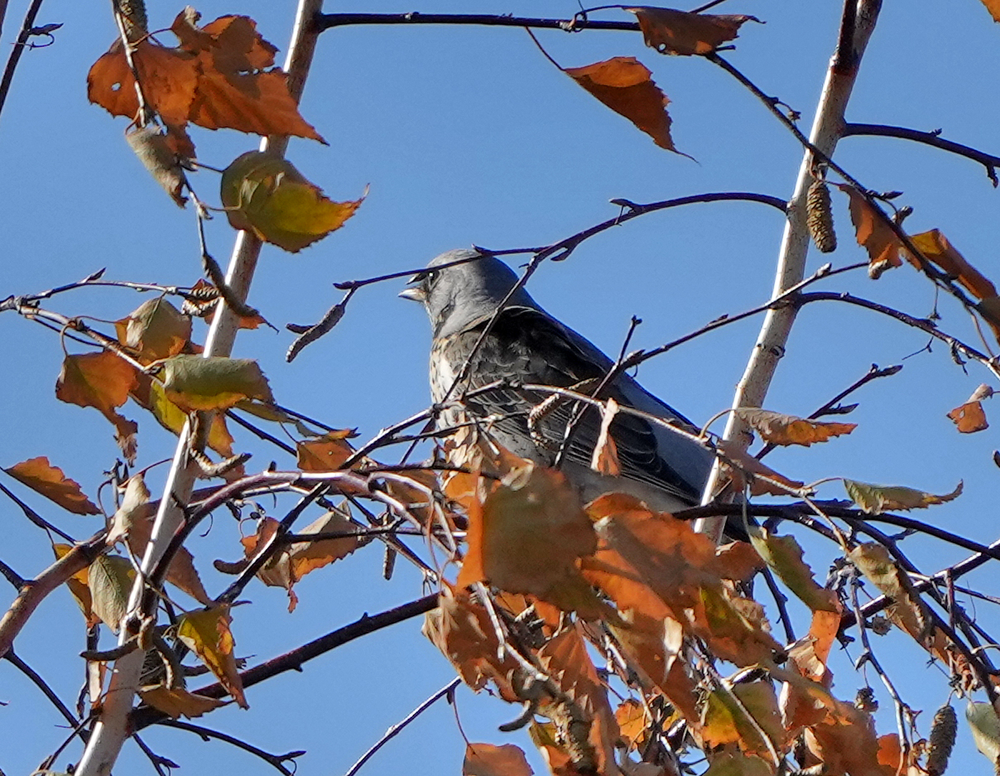2025-11-28. Игорь Фефелов: (-1-)Гораздо более наводит на мысль о гибриде вот этот дрозд. И первое и второе впечатление - рябинниковое. Крыло темнее спины, в то время как у чернозобого дрозда крыло и спина практически одинакового и цвета и насыщенности. От рябинника его отличает только цвет крыла, не видно бурых тонов. 2025-11-30. Александр Кочетков: (-1-) На моём мониторе крыло смотрится вполне себе бурым; просто солнце, видимо, было чётко слева от фотографа.