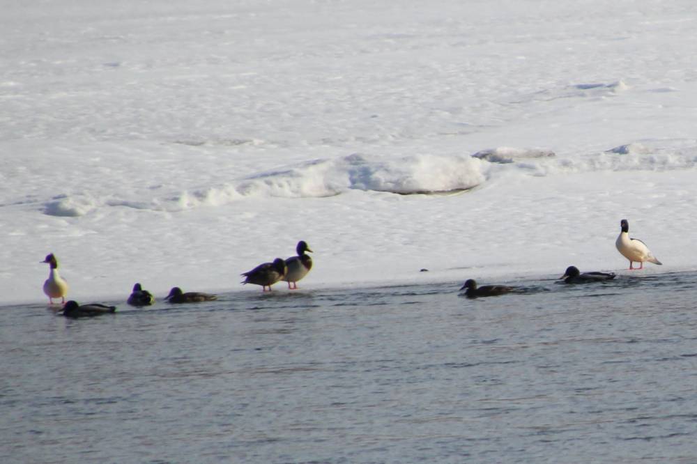 7. Также с лебедями зимуют кряквы и несколько больших крохалей (как мне кажется)