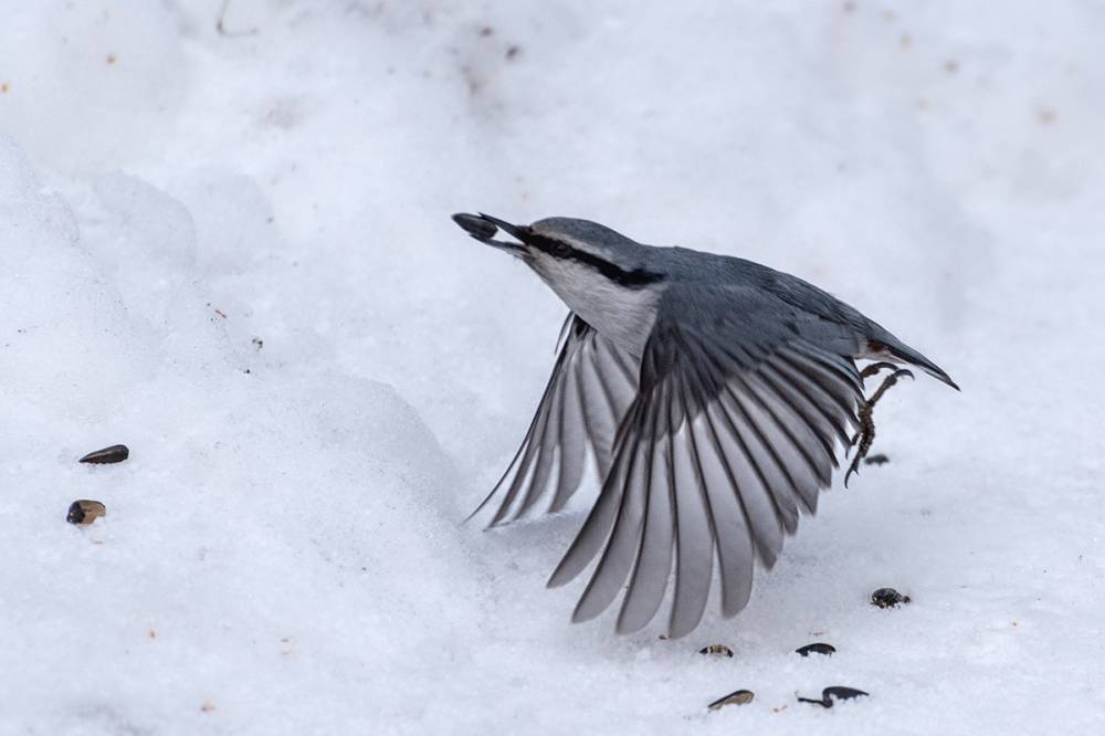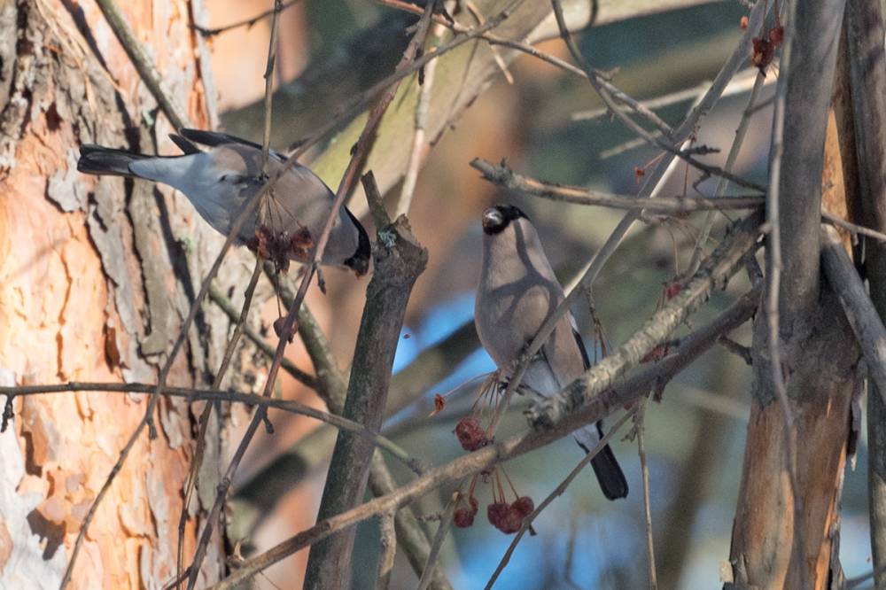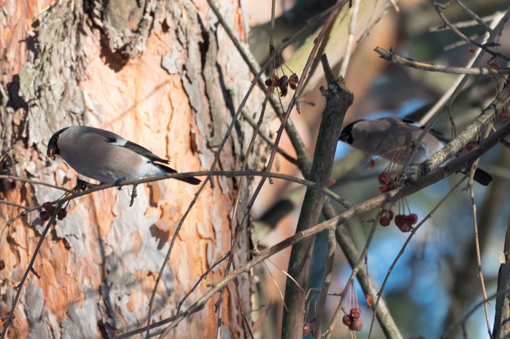 Это мое первое большое воскресенье. 28 февраля поехал как обычно в бассейн и 4 часа прогулял по лесу. Чувствуется приближение весны, если в прошлые выходные активность птиц была вялой, то сейчас они как с ума посходили, очень активны, голосисты, постоянно в движении. Удалось запечатлеть 10 видов (включая домового воробья в городе): снегирь, ополовник, большой пестрый дятел, синица, полевой воробей, дрозд, поползень, сойка, пухляк. Впервые увидел ополовника, небольшая стайка держалась вместе с синицами, но в отличие от синиц в луже не купались. Второй раз за зиму удалось встретить снегирей, сидели очень далеко, при попытке подойти поближе улетели. Удалось запечатлеть летящего поползня. Впервые вижу, чтобы большой пестрый дятел таскал кусочки хлеба. Дроздов было весьма много, пролетала стайка из 15-20 птиц, позже встретил их на выходе на проталинах вместе с синичками. Соек было замечено около 4-5 разговорчивых особей, до этого больше одной не попадалось, одна сойка летала вокруг дерева, то поднимаясь вверх, то опускаясь вниз, при этом двигаясь по спирали.