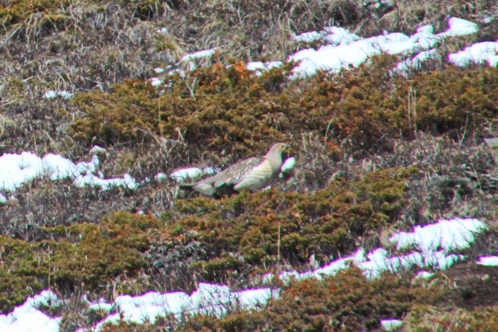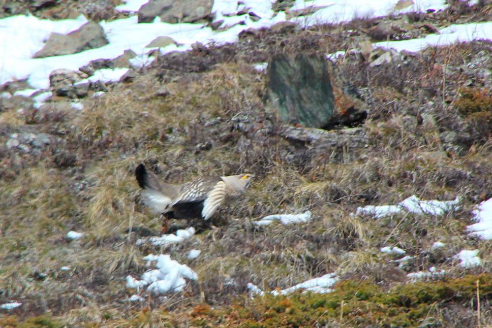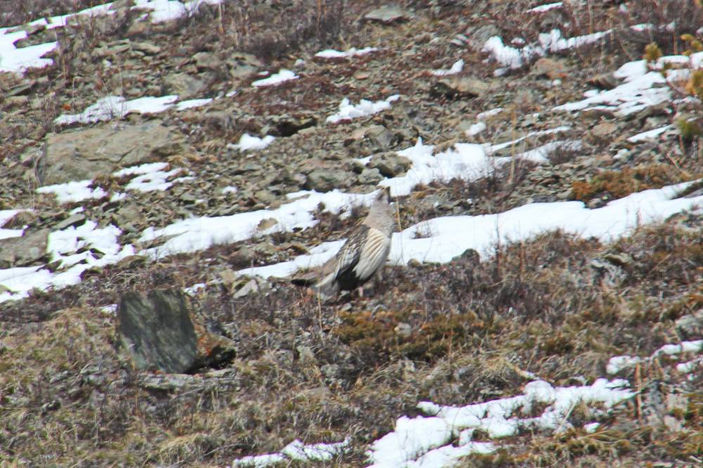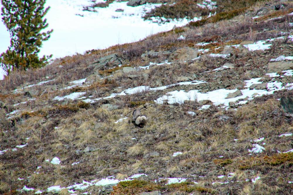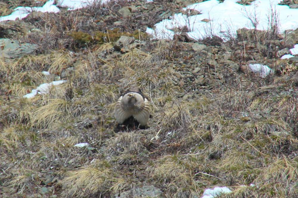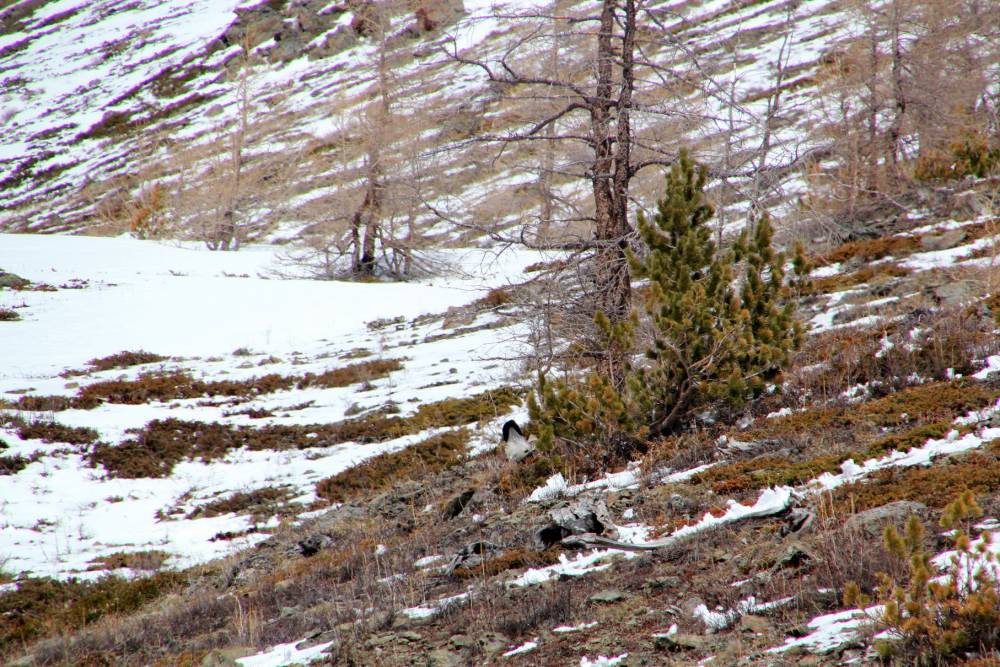 На майские праздники я уехал в горы. В район Актру, Республика Алтай. Точнее, в долину речки Тюте.Неделю гуляли по горам. Там и встретились с уларом.