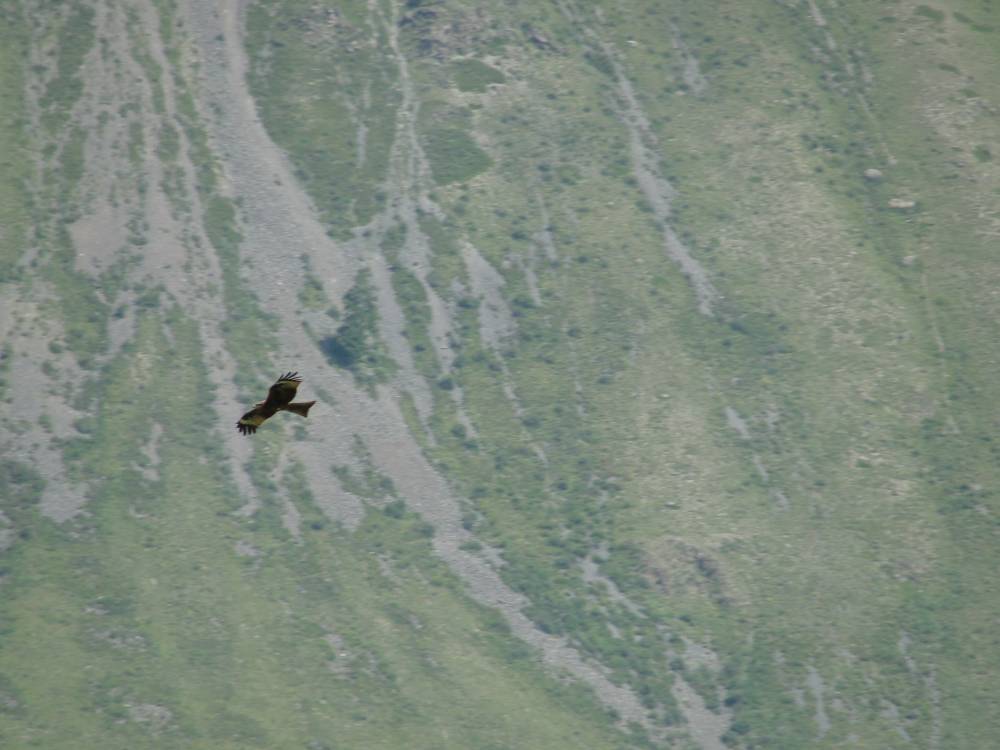 Небольшая группа исследователей отправилась на поляну в гору для наблюдения за охотой коршунов. В качестве приманки взяли сырое мясо и разложили его в разных местах. Сами мы засели неподалеку. Коршуны прилетели почти сразу, сначала один, затем над нами уже кружила тройка птиц. Они втроем кружили над мясом, но ни один не соблазнился легкой добычей. Наблюдения длились около полутора часов, но за это время коршуны не поймали добычи.