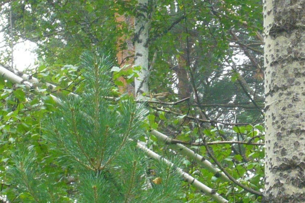 В субботу пробежалась по селу, по окружающим лесам и вышла к Енисею. Утро было тихое и пасмурное, стояло сильное задымление от пожаров. На большей части леса тишина, чаше слышались крики бурундуков, чем птиц. Птицы в это время кочевали смешанными стаями в основном из коньков, синиц, мухоловок, пеночек, зябликов. В кронах мяукала иволга.