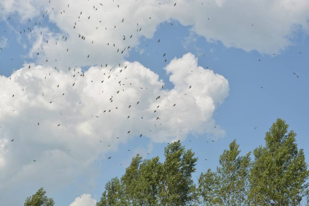 За одним из поворотов наткнулись на полевых луней. Самка недовольно кричала в кустах, а самец кружил над нами.