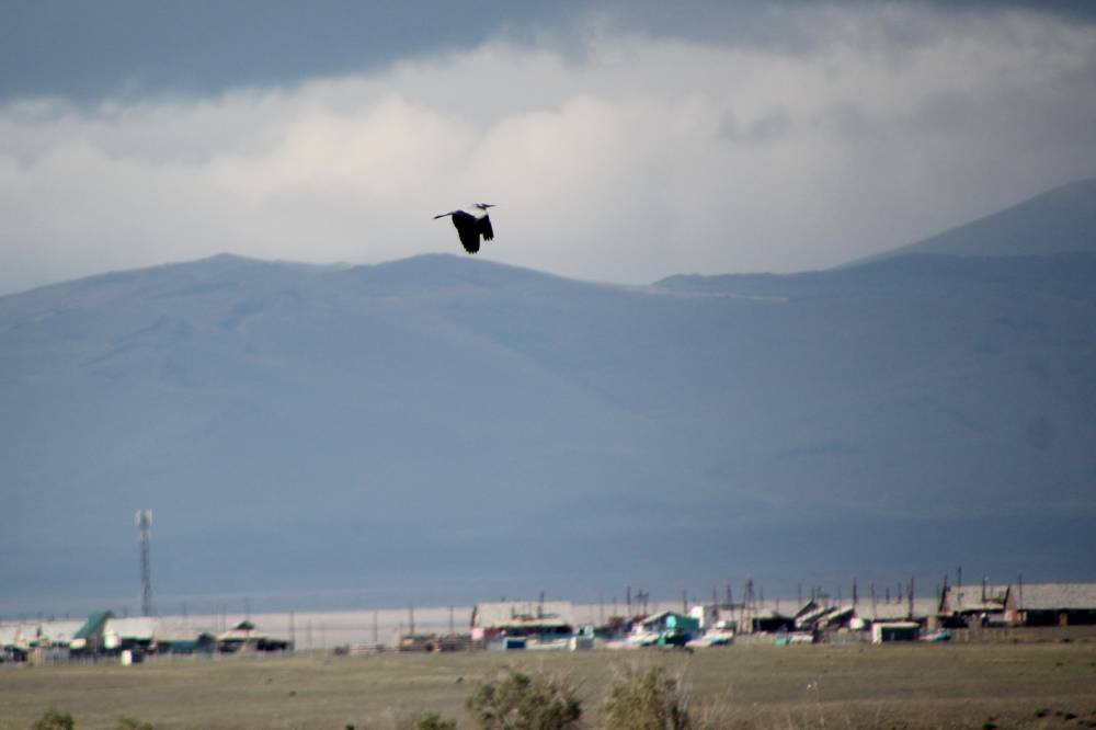 15. Проехали Кош-Агач. Много живности прямо в поселке. Это пролетает серая цапля.