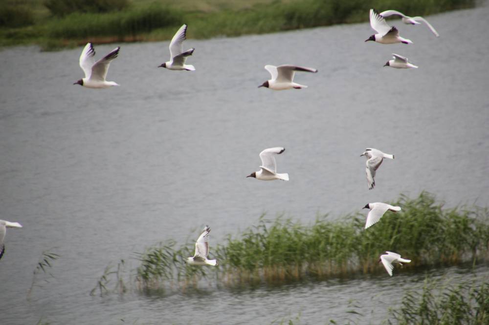 21. Среди озерных также летают какие-то белоголовые чайки..