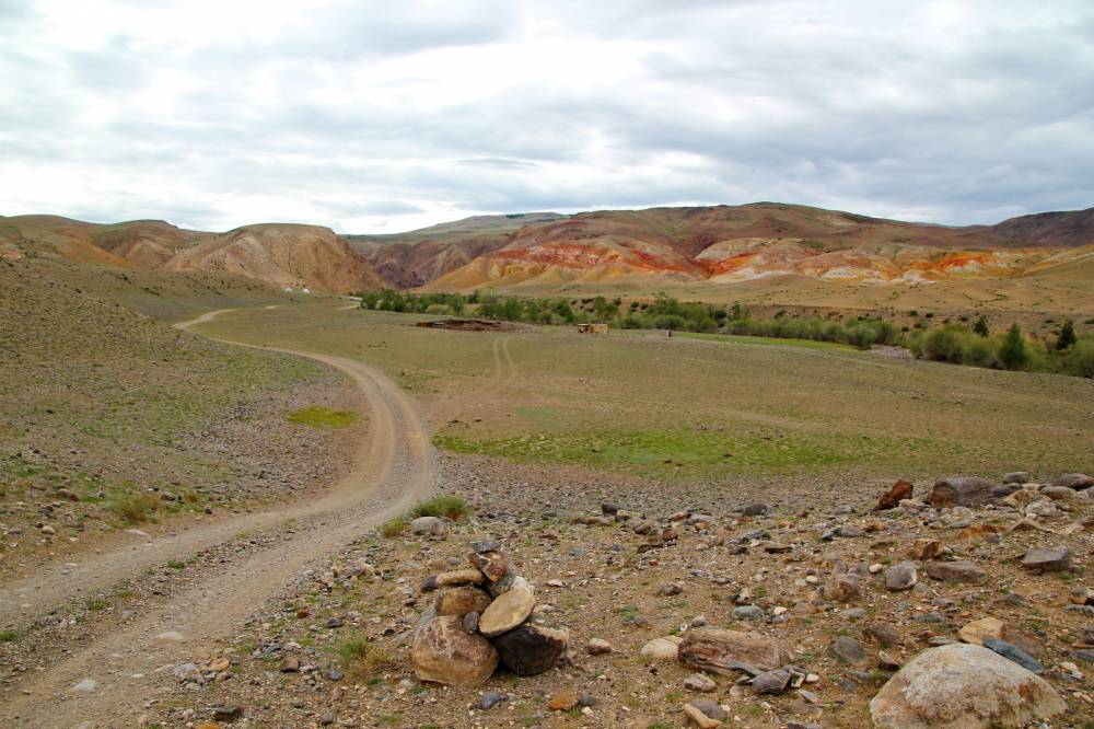 40. Кони устали, делаем перерыв. Горы действительно вокруг цветные, с преобладанием красного цвета.
