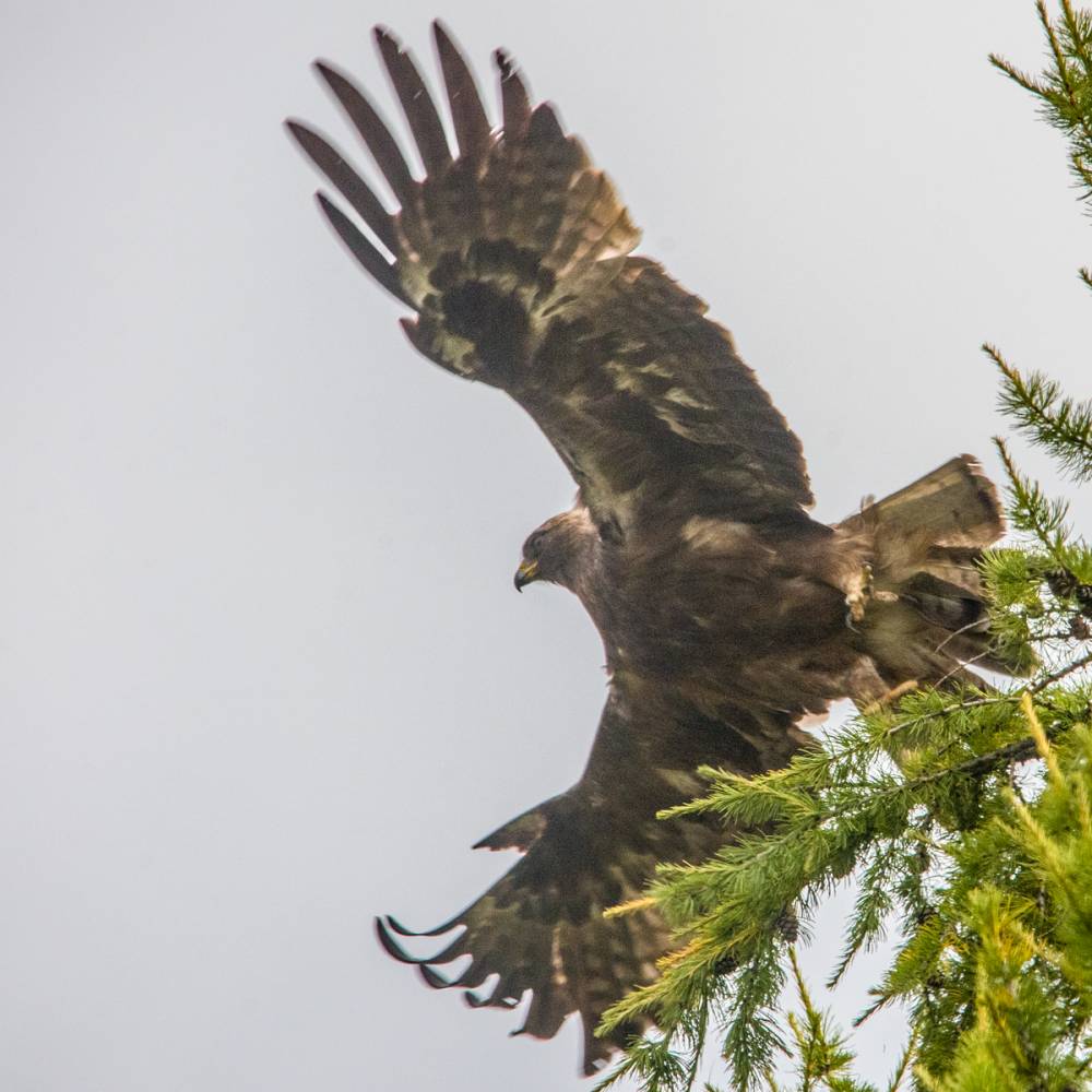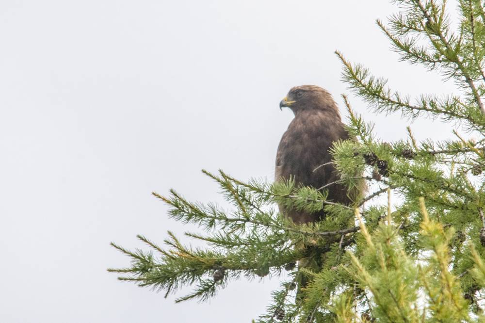Далее... Орёл-карлик на лиственнице, который, не обращая особого внимания на меня, вышедшего из машины, обозревал окрестности. В поисках съестного, конечно же.