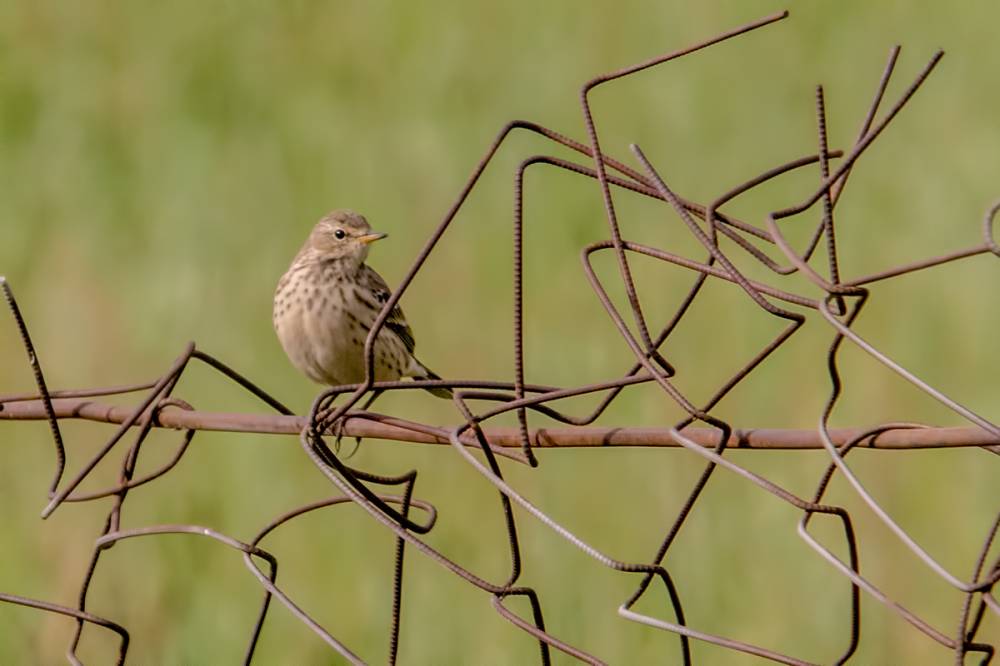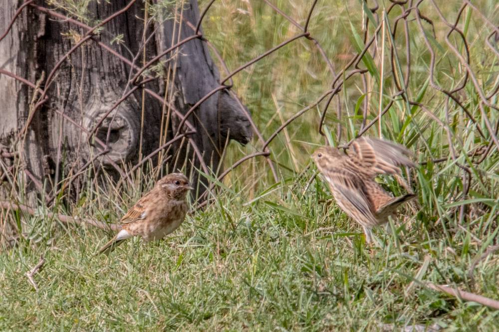 Там же, в Улагане, на заборе, который охранял какое-то травянистое поле, повстречали шумные стайки овсянок. Судя по окрасу, молодые белошапочные.