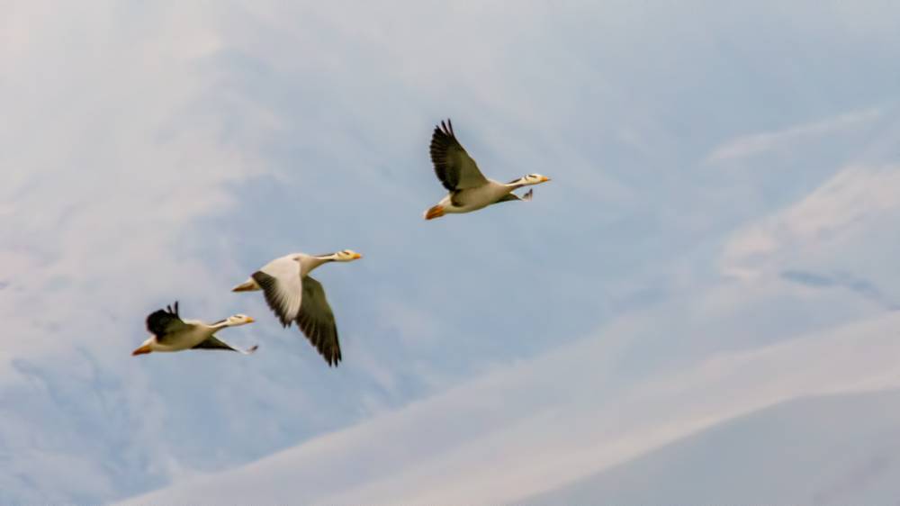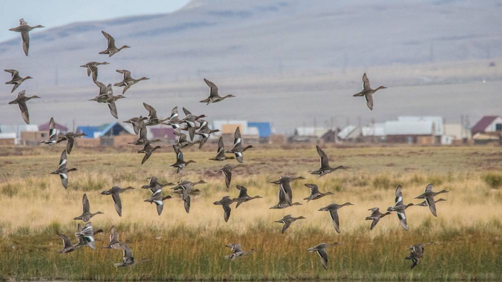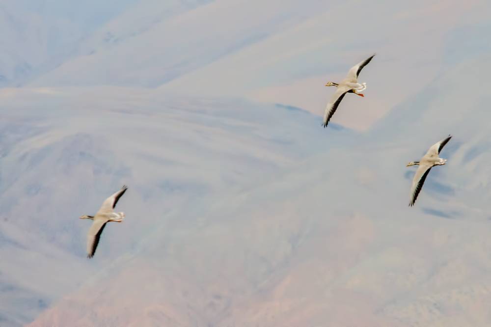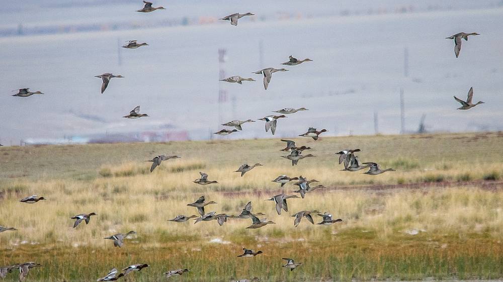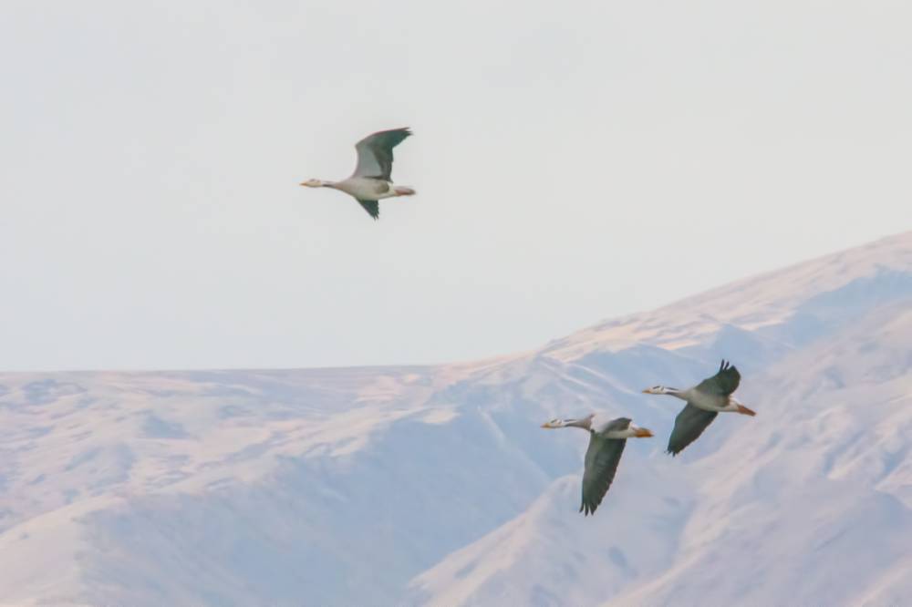 Вечером мы всё же добрались до озёр возле Кош-Агача. Куличков, конечно же, уже не застали, но уток было ещё много. На одном из них в воздух поднялась довольно большая стая, этакий микс из серых уток, чернетей и прочих. Но! С ними были гуси. Горные гуси, три красавца, которые ещё не улетели со своей родины.