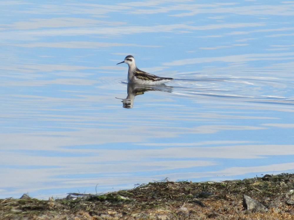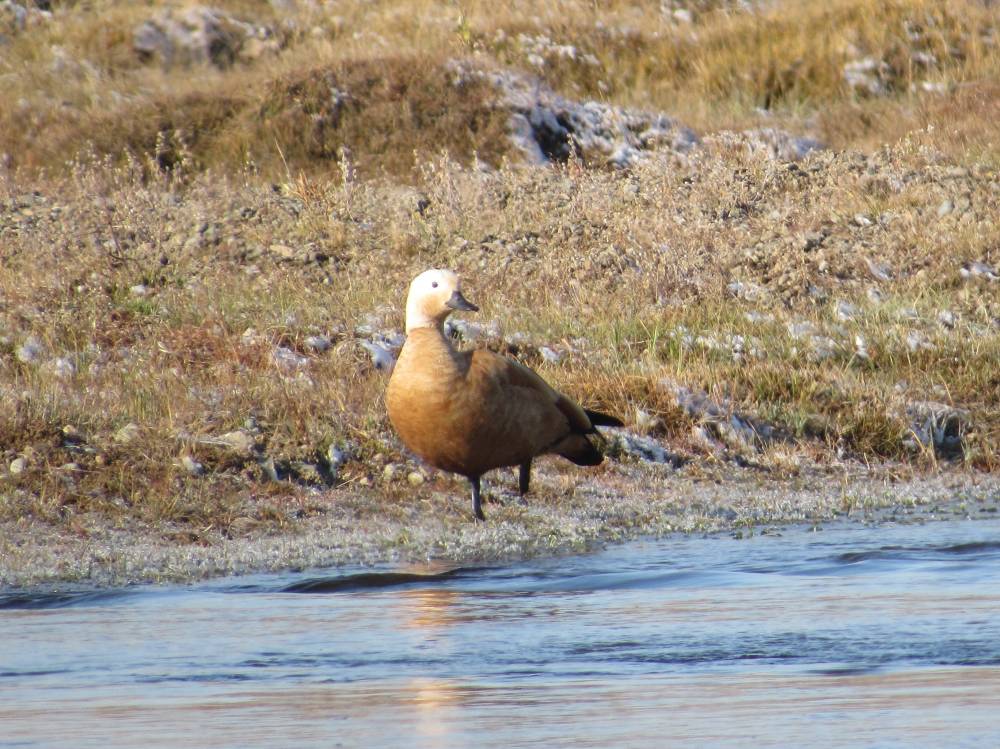 На обратном пути возле машины снял малого и рогатого жаворонков. Только отъехал, попалась стайка клушиц. Они в этих местах обычны. Далее снимал на небольших озерах, они там через каждые метров 500-800. Из уток попались красноголовые и красноносые нырки, большие крохали, огари, кряквы, лысухи, морская и хохлатая чернеть. На речке резвились большие бакланы. На берегу одного из озер снял белую и маскированную трясогузок, а также стайку круглоносых плавунчиков. Незаметно пролетело время и пора было двигаться домой.