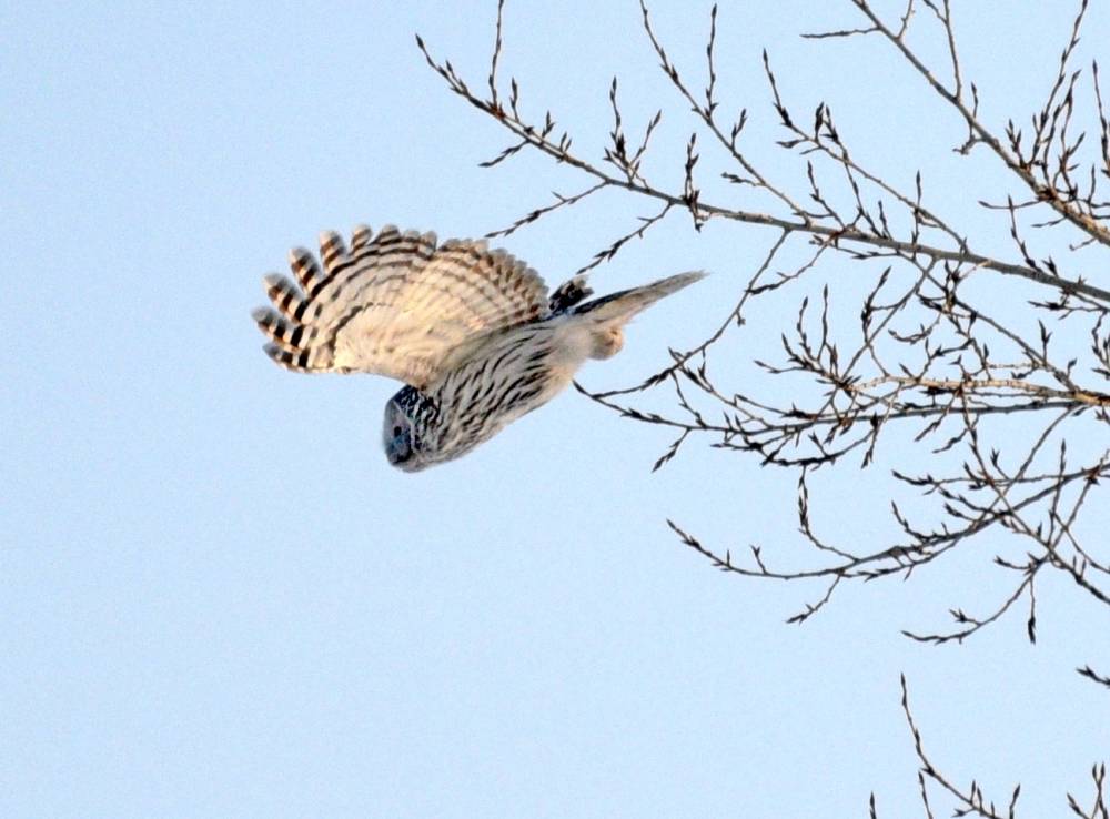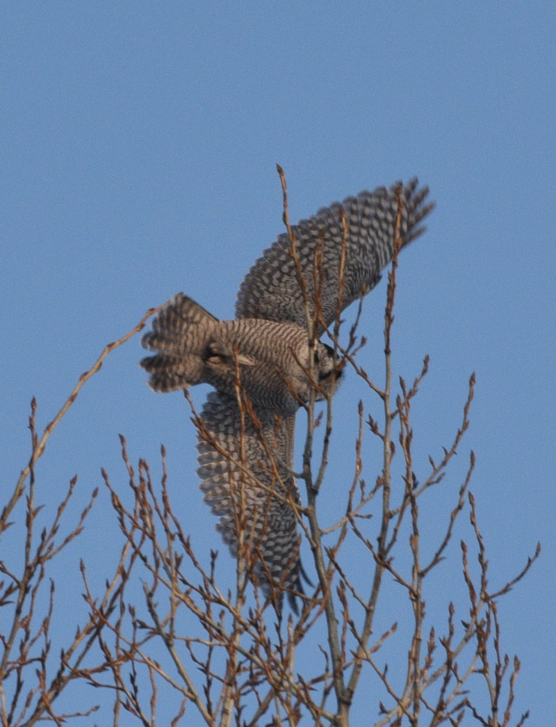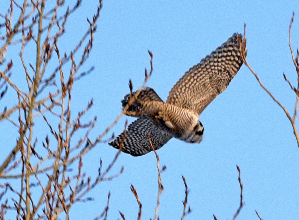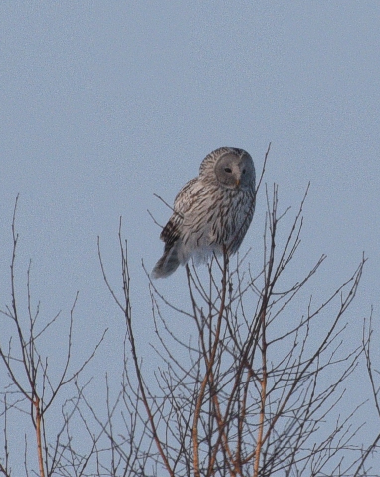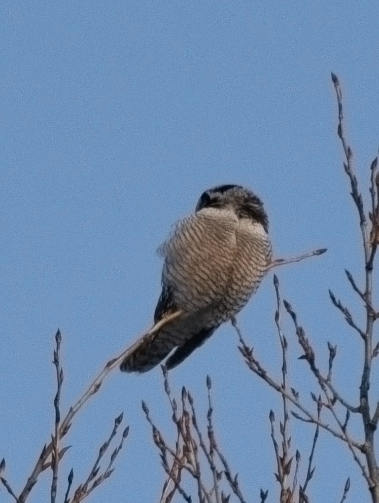 Сегодня поехали в противоположном направлении. Раньше я там никогда сов не встречала. Но сегодня удача улыбнулась. Сначала попалась длиннохвостая неясыть и через пару километров на макушке осины увидела ещё и ястребиную . Жизнь удалась))