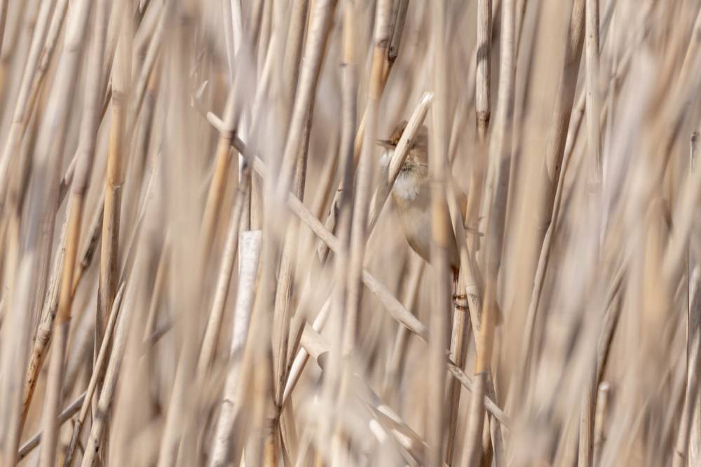 Опять с мокрыми ногами возвращаюсь к машине. В тростниках слышу знакомое пробулькивание. Бормотушка? Ставлю запись голоса, почти совпадает, но есть, что-то отличное. Птица едва показывается, и тут же скрывается в стеблях тростника. Видимо, индийская камышевка. Биотоп и время прилета верные...
