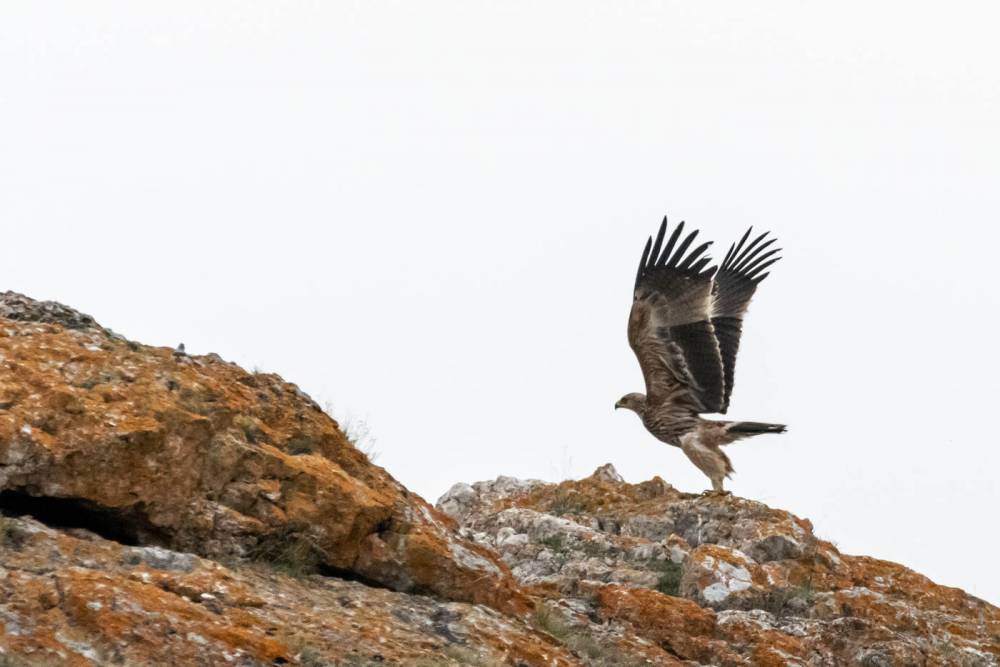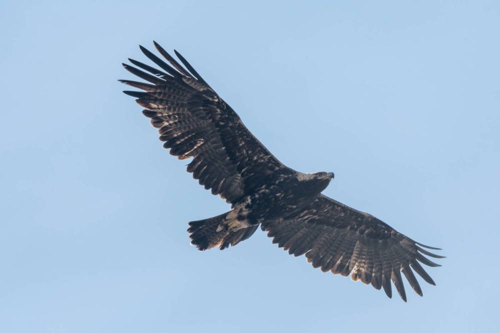 При пересечении Черного Июса, надо мной парит могильник. Он кружит так низко, и подлетает так близко, что почти не помещается в кадр.