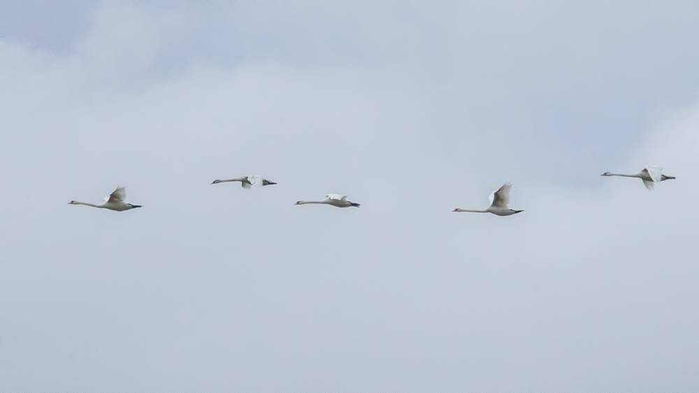 Внимание моё привлёк шум с неба. Как мне показалось, огромные лебеди летели в сторону запада. Пять шипунов-красавцев...
