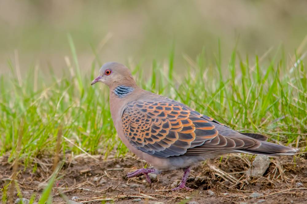 8. Одна из пары больших горлиц, кормились у дороги семенами трав.