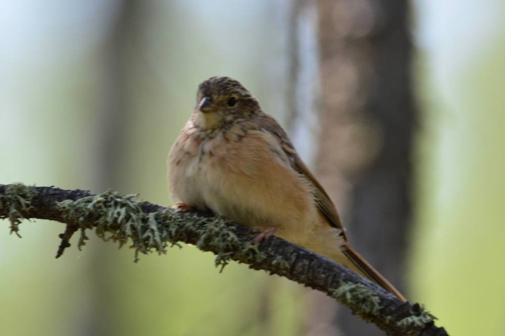По распределению окраски - самец. Крупный клюв, при этом рыжие тона (фоном, а не краями перьев) есть и снизу до боков, и сверху, поэтому мелкие овсянки, имеющие рыжее, не годятся. Остаются два варианта - красноухая и белошапочная. Красноухая тоже вряд ли, у нее спина попестрее, клюв поменьше.