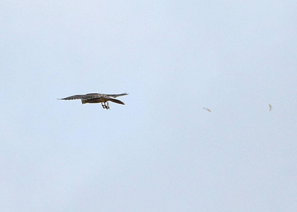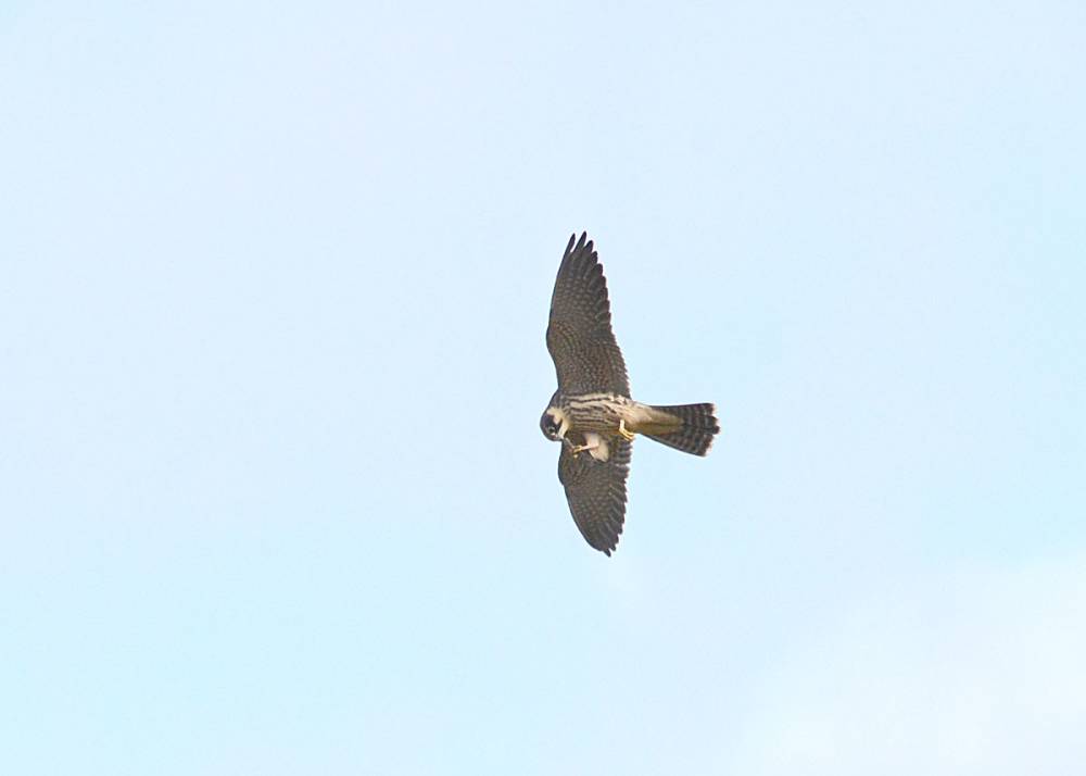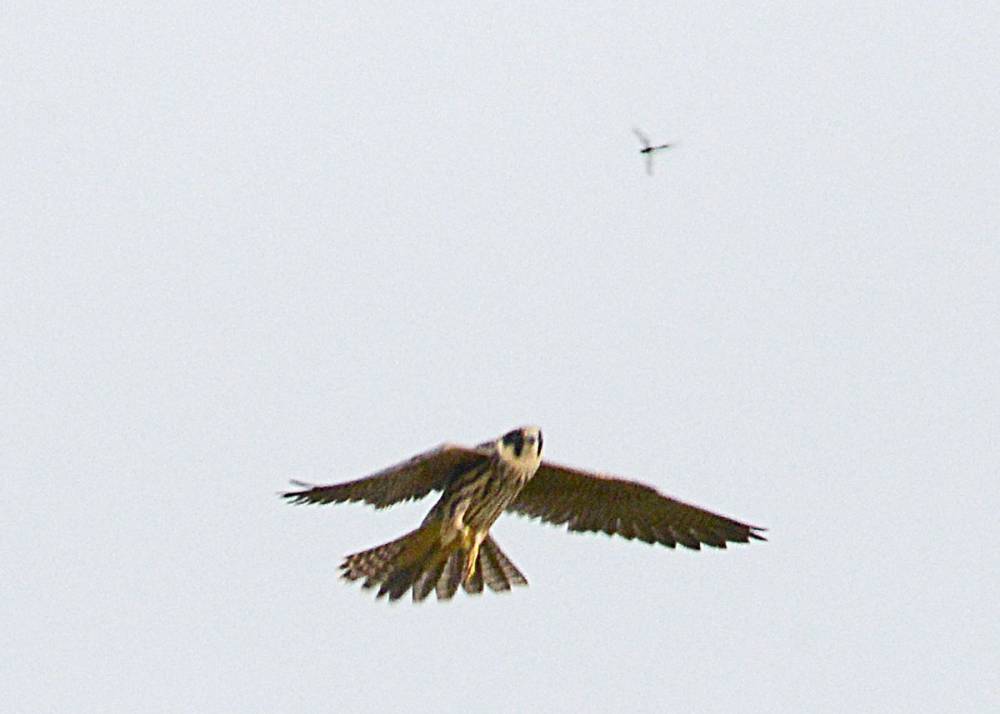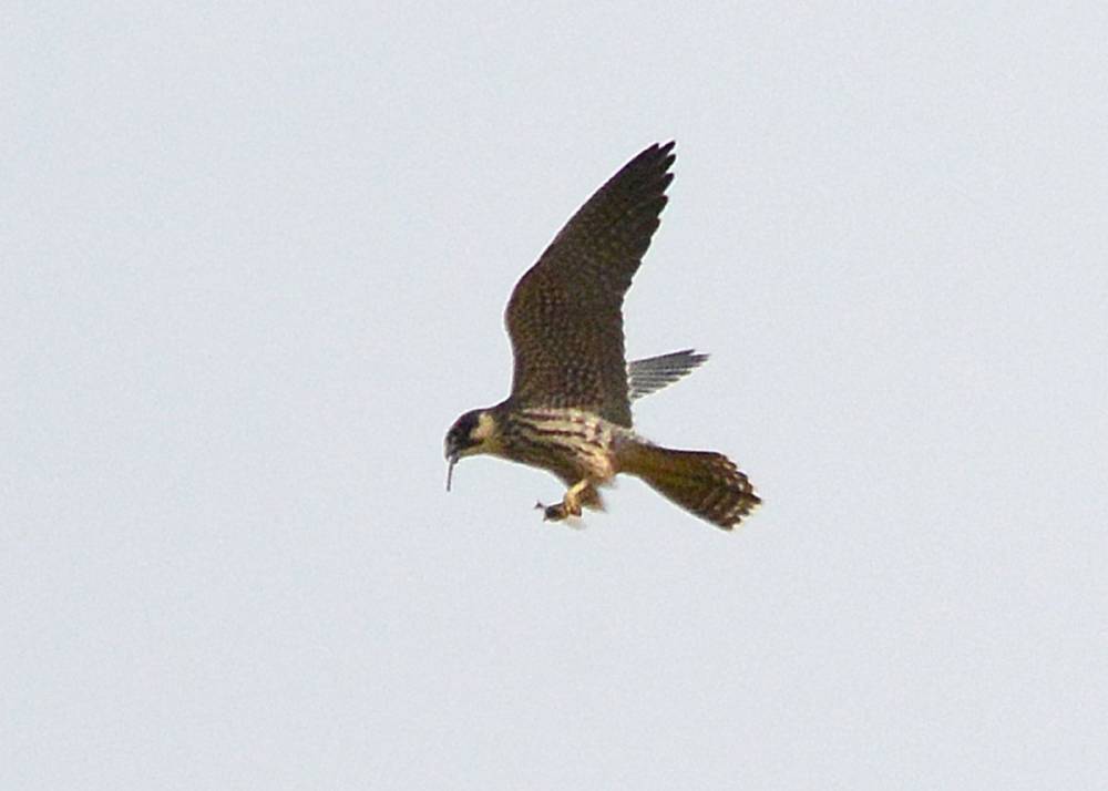 Наблюдал над водоёмом охоту чеглока на стрекоз.