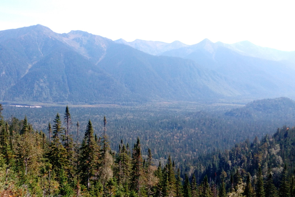 После преодоления одной из речек видим раздвоение тропы и указатель - налево С, направо Т. Что значит С мы так и не узнали, а направление Т выбрали не сказать, чтобы совсем интуитивно, просто было понятно, что на гору - это скорее направо, чем налево. Позже узнали, что Т - это Тальцинский пик, но в пути мы этого еще не знаем, пока просто идем по проложенной тропе. В начале тропы примерно то же самое, что мы уже видели. Но потом тропа пересекает болотце и начинает забирать в гору. Здесь уже немного другие птицы. Например, рябчик (дважды), серый снегирь, сойка.