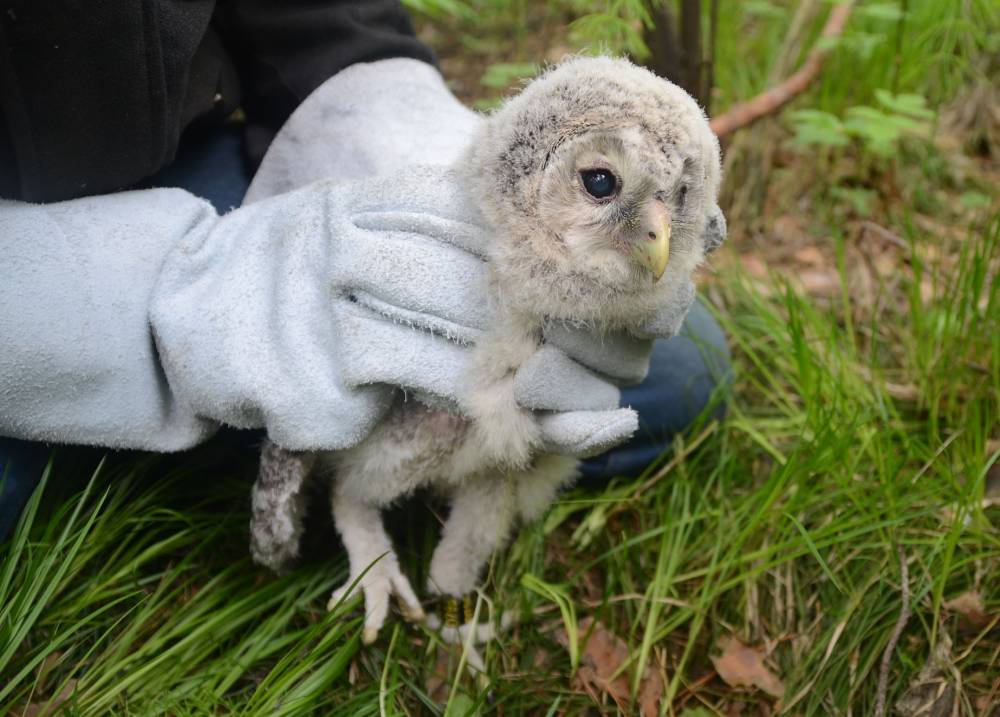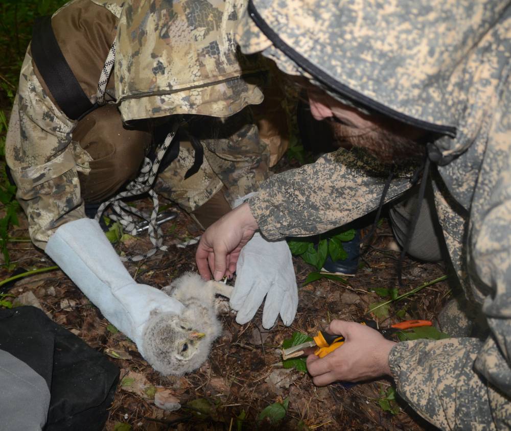 Хотя основные результаты от нашей работы мы ожидаем в последующие годы, первая польза уже есть. Это и заселенные домики, и испытания оборудования для видеонаблюдения за жизнью птиц, и первый опыт кольцевания птиц. От птенцов получены образцы для выделения ДНК для генетических исследований. Также по ходу развески нам удалось наблюдать других интересных птиц, а иногда и находить их гнездовые участки. Кроме бородатых неясытей, в этом году мы нашли новый гнездовой участок сапсанов и убедились в том, что в Новосибирской области эти сокола начали использовать хорошо забытый ими стереотип гнездового поведения – гнездование на деревьях.