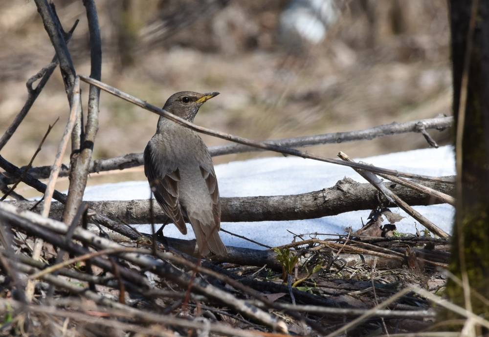 Сегодня, наконец, едва ли не первый очень теплый день в наших краях. Решила прокатиться вдоль р. Томь и заглянуть в доступные прибрежные лесочки. В лесу еще много снега, мокро. На проталинах из-под черной прошлогодней подстилки повылазили маленькие ветреницы, еще розовые и очень сочные после зимней спячки, и сразу раскрылись под солнцем, сияя в мрачном лесу белыми звездами. Сырая почва - благодать для дроздов: их очень много пасется на земле, добывая червей. В основном рябинники, чуть меньше-темнозобые. Очень хотелось встретить краснозобого, но, видать, не судьба. В чаще было слышно пение певчего дрозда, заливались зяблики, щебетали щеглы, юрки и большие синицы. На берегу реки семенили по галечнику маскированные трясогузки, но как-то неохотно: вода большая, плывут льдинки, ветер холодный, и насекомых, наверное, мало. Кружит в небе коршун, пролетела стайка грачей, где-то каркает серая ворона, под берегом пробежала мокрая норка и скрылась под камнями. На пригорке на солнцепеке грелась змеюка. Проехали еще несколько километров, очередная лесная стежка вилась среди болот, много воды.У реки спугнула пару крякв, а в лесу встретился веселый бурундук. Ну вот, на сегодня все.