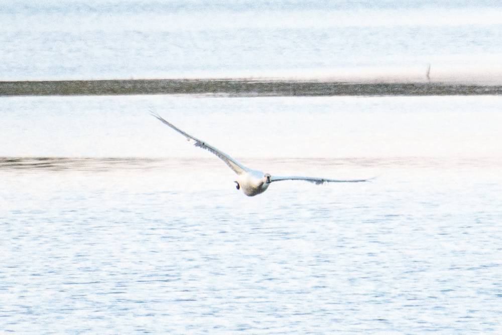 Upd Лебедь невысоко и недолго летает над рекой, судя по фото 6-7 повреждены крылья.