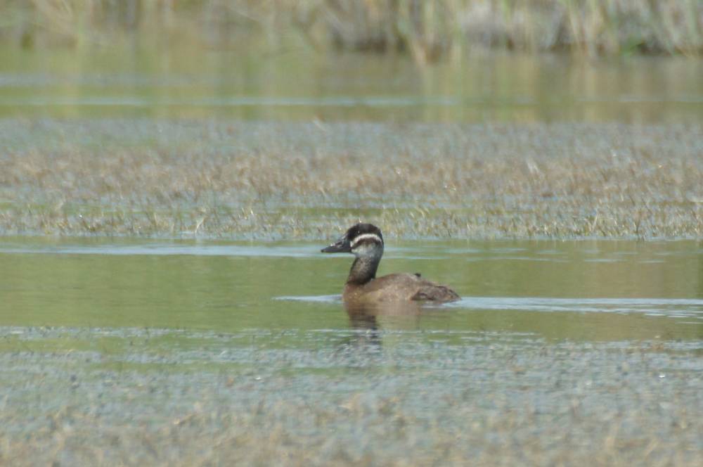 Доехали до водоёмов у Карасука, там я вышел и довольно долго побродил по дороге между них взад - вперёд. На куликов место достаточно богатое: попалось много Ходулочников (в том числе молодняк), две Мородунки, молодой Травник, достаточно много Шилоклювок, Перевозчики, Турухтаны, и также те, на кого я сильно рассчитывал в этой поездке - Круглоносые плавунчики (Ура!) К сожалению, снять красиво плавунчиков у меня не получилось - они были хоть и близко, но не по солнцу. Потом поехали на водоём в центре Карасука - судя по точкам на Sibirds, там регулярно гнездятся Савки. Они нам и попались. Было встречено две самки на водоёме - одна вдалеке у камышей, а вторая поближе. Это был, пожалуй, самый "быстрый" мой лайфер - только приехали на предполагаемое место, я вышел из машины и спустя примерно 5 секунд уже увидел искомую птицу.))) Также там были Красноголовые нырки и Хохлатые чернети с выводком.