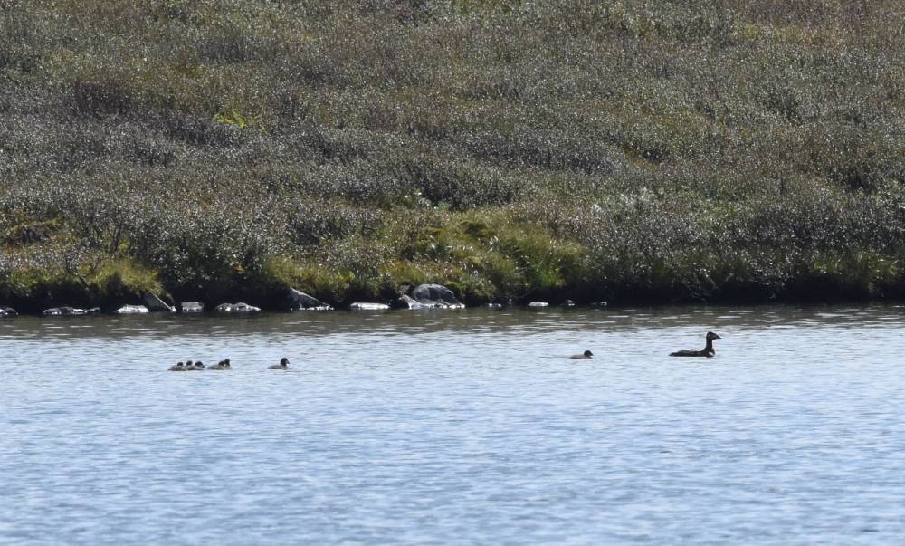 Это была последняя теплая ночевка, следующая-за перевалом "Сотый" в Тыве. Здесь Дмитрий заманивал на голос вьюрков. Гималайский точно попался, а по поводу жемчужного - попал ли он на мою камеру (и он ли?) у меня большие сомнения, далековато было. Немного спустились с перевала. На реке Кара-Суг - городские ласточки. Искомый воронок не обнаружился - облом. Зато в изобилии тусклая и бурая пеночки, полярная овсянка. Ночью - заморозок, на палатке иней. Днем ветрено, тучи перемежаются с солнцем. Поднялись на высокогорное озеро. Горбоносые турпаны: утка с семью малышами и еще два взрослых турпана. Дмитрий снял горного дупеля. Опять овсянки и пеночки. В лиственнично-кедровом лесу-кедровки и кукши. Снова ночевка и спуск. Приманился горный конек. За перевалом бродили по курумникам, искали завирушек, но не судьба. Зато сняли буроголовую гаичку.