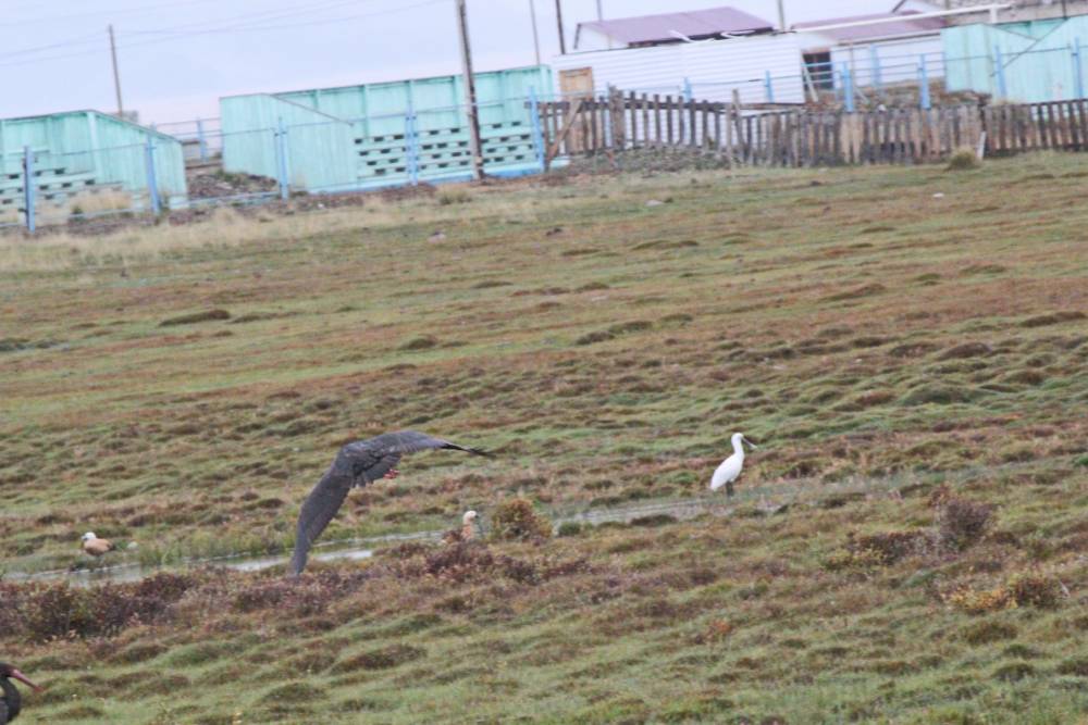 Зато почти сразу, в пределах села, встретилась семья горных гусей, 9 птиц. Отлично! А далее – как по заказу, пара черных аистов и пара колпиц, я их вообще впервые вижу. Лайфер!
