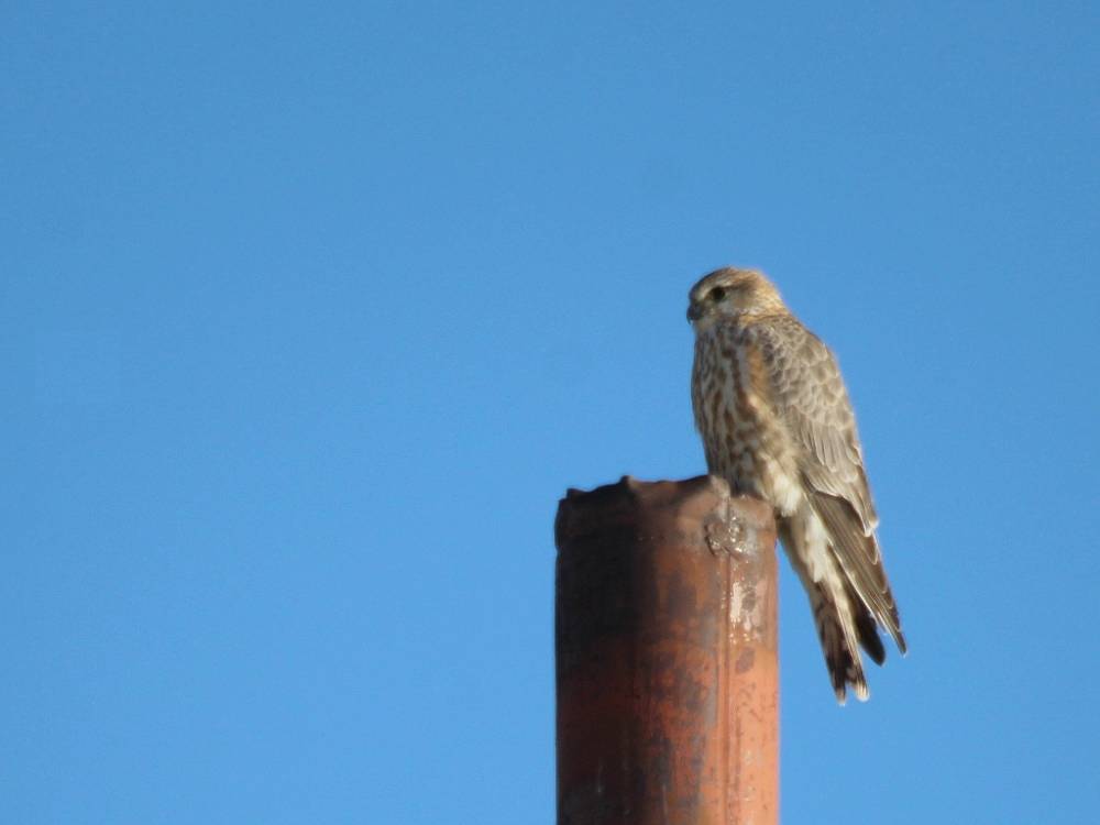 Бельтир и его окрестности в этом году были почти без снега. Это село, которое уже не раз приносило нам интересные встречи, мы, конечно, обследовали довольно подробно – пройдя пешком восточную половину села, окрестности стадиона и часть села за р. Талдура. В восточной части села и на стадионе птиц было очень много – здесь держались сотни рогатых жаворонков, десятки каменных, полевых и домовых воробьёв, бледных завирушек и горных чечёток, несколько больших чечевиц, а вот в кусочке Бельтира за рекой птиц почти не было. У стадиона также был встречен (и неплохо отснят) дербник. Разумеется, что в селе также были чёрные вороны, вороны, обыкновенные сороки и большие синицы – обычные обитатели почти всех населённых пунктов Чуйской степи.