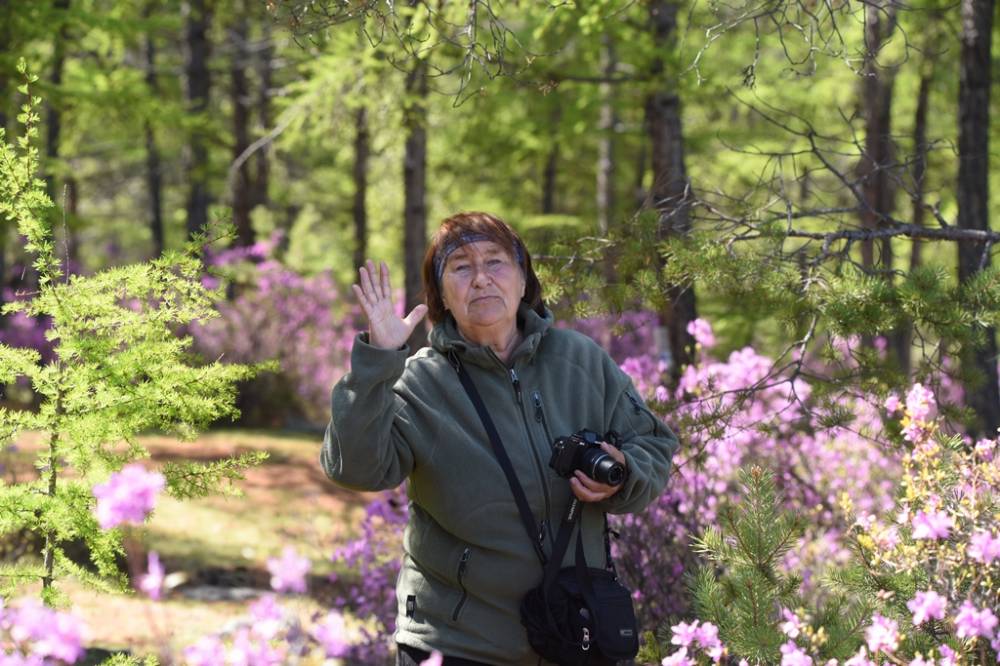 После ванн нас повезли вдоль железки на границу с Иркутской областью. На перевал Дабан. Автомобильная дорога проходит прямо над почти 7 километровым тоннелем БАМа . Господи, какие там дороги. Отсыпаны просто булыганами. Удивлена что камни не пробили днище машины. Там мы были на такой высоте, что по обочинам лежал снег, и поднимался до самых вершин. Нам сказали, что в этих местах в начале июля цветет золотистый рододендрон, и, выйдя из машины, к большому удивлению сопровождающих рододендрон был весь в цветах. Мы еще не отошли от красоты даурского по берегам Байкала. Цветы золотистого раза в 2 крупнее, цвет нежнейший в сочетании с цветущим баданом просто сказка. Оле тут же встретился конек, который прогуливался по цветущему саду, но вот нарушили его лирический настрой, он обиделся и улетел. Мы больше часа, искали, манили но никто , кроме белой и горной трясогузки не откликнулся на призыв. На станции мы встретили восточный вид деревенских ласточек, с брюшком цвета терракоты. Очень красивые. Там же обреталась большая колония городских ласточек со слетками. Родители просто выгоняли их из гнезд клювами, молодежь пробовала крыло и стремилась вернуться в свои глинобитные убежища, но никак не могли попасть , куда хотели и повисали на бревнах дома, когда подлетали взрослые, они раскрывали клювики, но получали вместо еды тычок клювом, и приходилось снова лететь. Очень трогательная и поучительная картина.