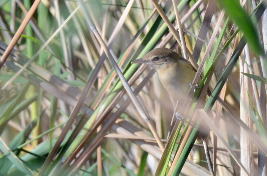 Включил запись голоса Дроздовидной камышевки, подождал пару минут, и, не получив обратной связи, переключил на запись Усатой синицы и отвлёкся на перекус. Подняв голову, увидел, что связь – таки была получена – в тростнике поодаль шарились 2 молодые Дроздовидки. Сделав более – менее приемлемые фото, к своей радости услышал и голос Усаток – уж этих товарищей можно фотографировать часами, благо, попались сговорчивые особи.