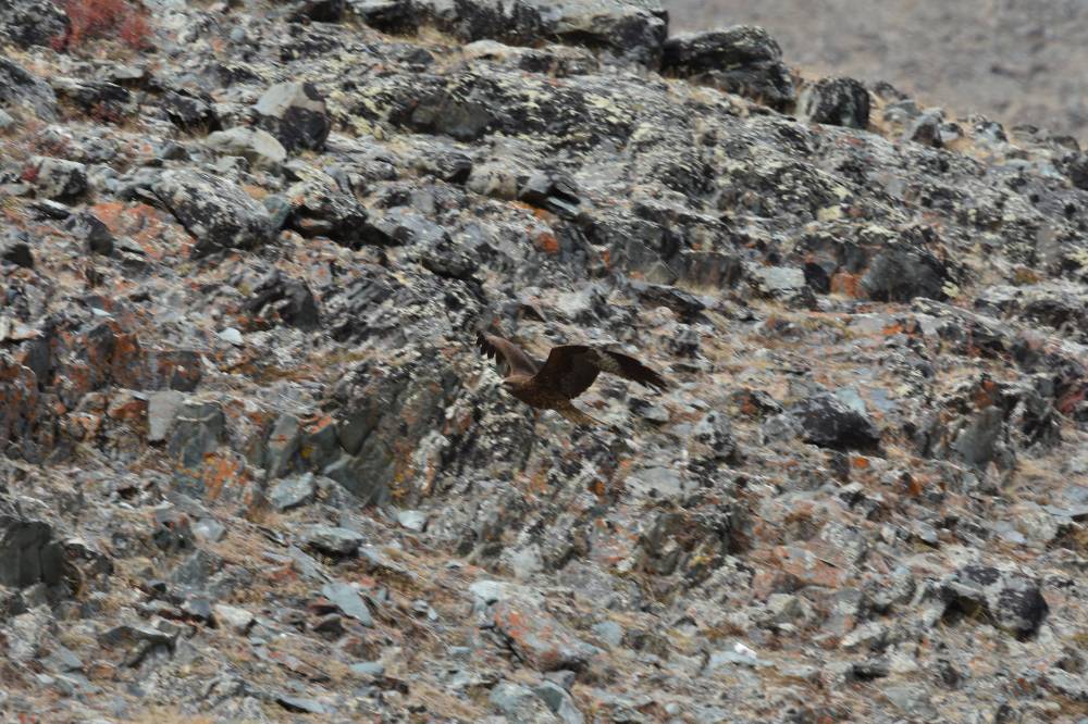 После первого снегопада прошедшего за неделю до нашего приезда количество птиц уменьшилось, особенно мало было водоплавающих. из воробьиных так же присутствовали уже только зимующие виды. Но всё-таки удалось увидеть бледную завирушку, каменного воробья, белых трясогузок, каменок, горных коньков, краснобрюхую горихвостку, горного дупеля, домового сыча и конечно же клушиц. Из хищников - дербника, чёрного коршуна, степных орлов большого подорлика и курганика. Из млекопитающих на склоне горы из далека удалось понаблюдать козерогов, много зайцев талаев. скальную пищуху, сусликов.