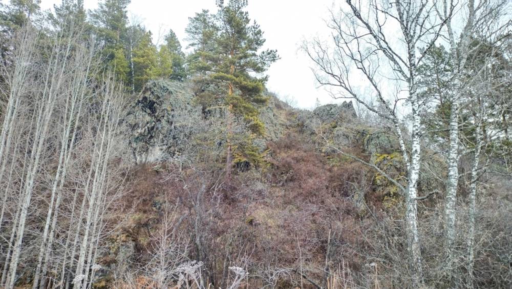 Через несколько километров дошли до искомой скалы – место для филина хорошее, с многочисленными скальными полками, в окружении пойменных угодий и старовозрастных лесов, но в текущем сезоне, он здесь, похоже, не гнездился, так как ни перьев, ни обильного помёта, ни свежих следов трапез обнаружить не удалось, хотя на одной из полок и были старые косточки ондатры или молодого бобра.