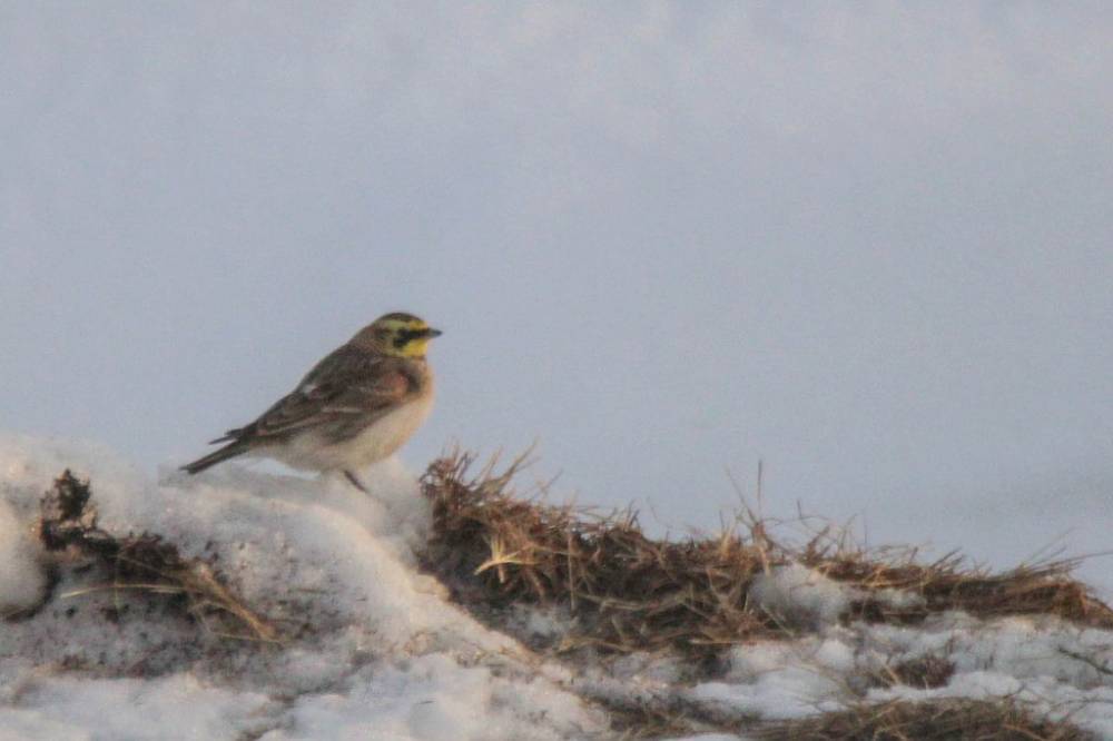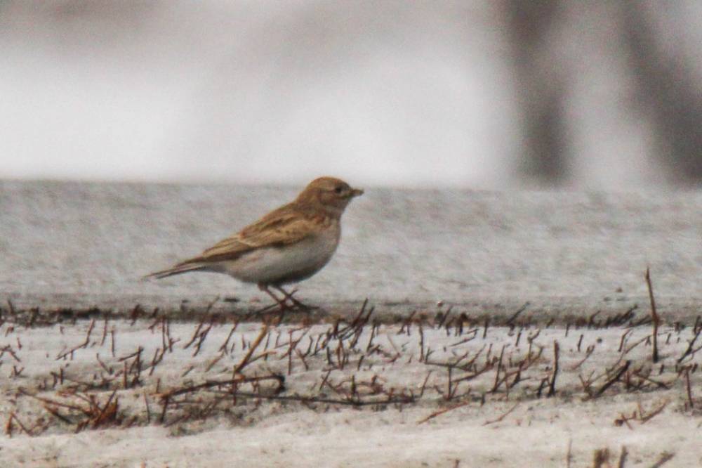 Видимо даже природа чувствовала всю черноту этой даты, и уже с утра встретила нас дождиком, сыростью и ветром. Выехали мы в сторону с. Баево, и в этом направлении снега на полях было заметно меньше, чем на вчерашних, и вскоре начали попадаться большие стаи пуночек. Недалеко от с. Новоярки в стайке из тундровых рогатых держался одинокий серый жаворонок, что доказывает, что хотя бы часть из массы залетевших осенью в Сибирь птиц успешно пережила почти всю эту зиму.