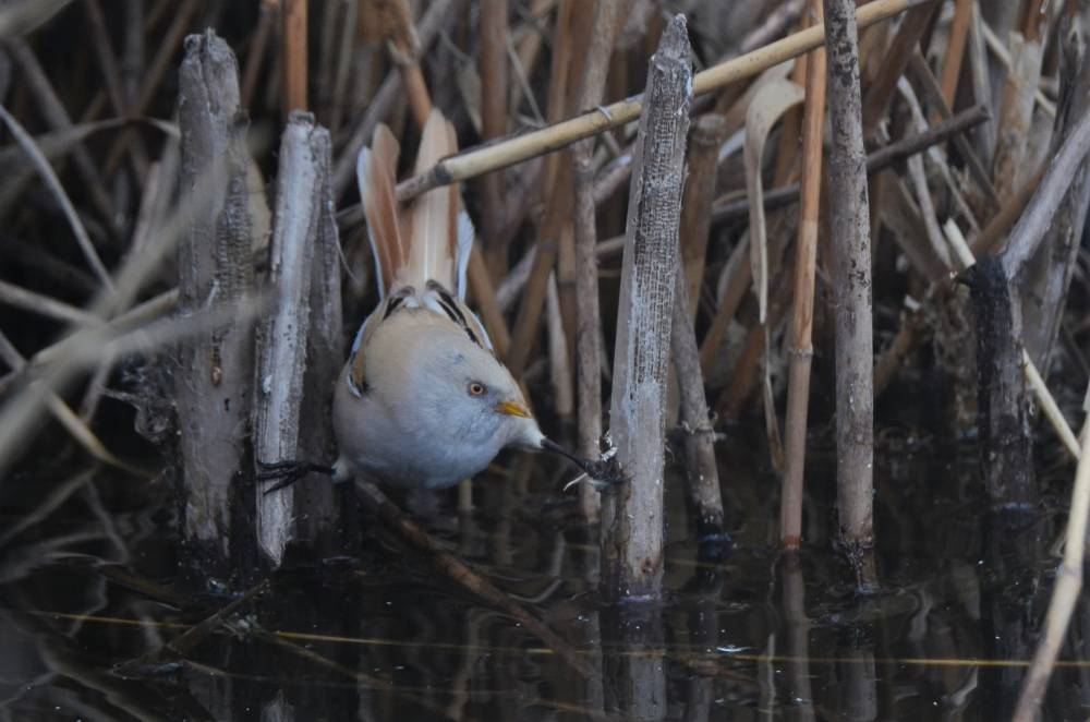 В том же месте встретили пару Усатых синиц, отказавшихся вылезать из камыша.