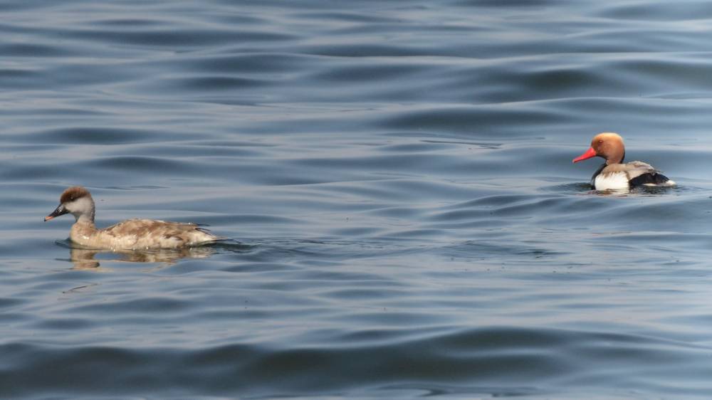 Утром прошлись по дамбе у гостиницы. Там держались стандартные Шилоклювки и Ходулочники, плавали Красноголовые нырки. Позже прилетела стайка Галстучников.