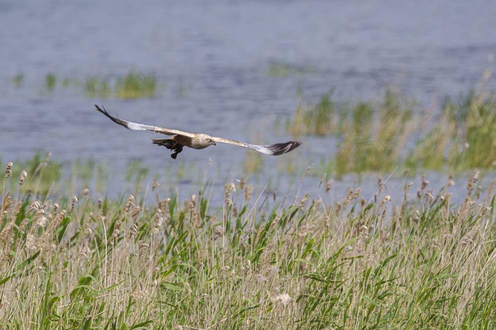 Самец болотного луня облетал берега в поисках добычи, и на моих глазах нырнул в тростники, и уже потом я увидел, что он что-то тащит в лапах. Оказалось, что добычей был птенец лысухи.