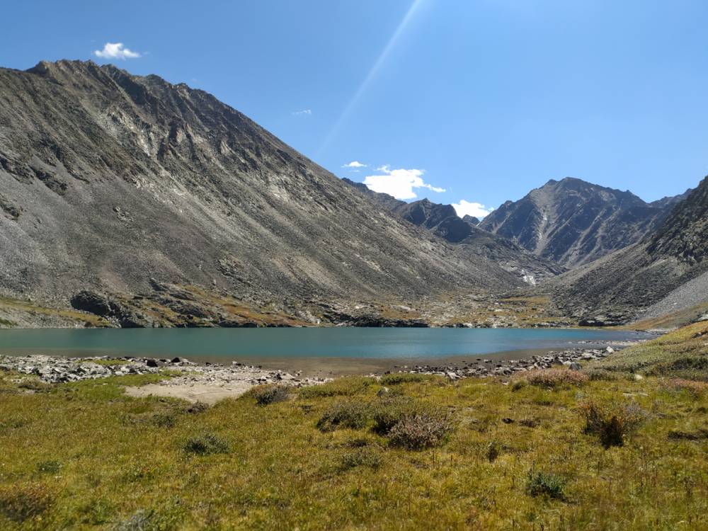 Мы забрались до Небесного (подъём относительно несложный и недолгий), немного прошли вдоль озера. Встретили Горных коньков, Горихвосток – Чернушек и Краснобрюхих (удалось отснять близко), неплохо поснимали молодых Гималайских вьюрков. На спуске встретились 2 Большие чечевицы, отснять удалось довольно близко.