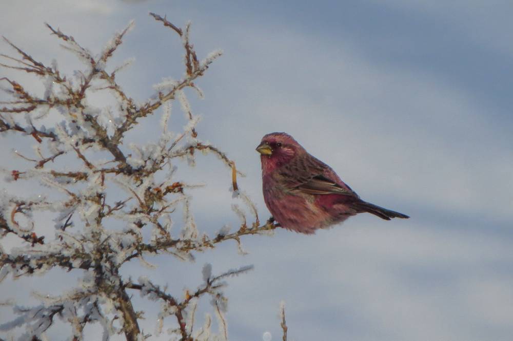 По пути до Алтайского мы встретили у свёртка на Верх-Аю большое скопление мелких птиц: Седоголовых и Черноголовых щеглов, Дубоносов, Снегирей, Урагусов, Полевых воробьёв.