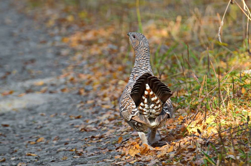 Сегодня на лесной дороге удалось отснять самку глухаря, которая склёвывала мелкие камешки. Осенью рябчики и глухари, как обычно, выходят на дороги в поисках гальки. [...... read more ]