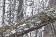 Утро выдалось холодным, 3 градуса было в 8 часов. Выхожу в берёзовую рощу. Несмотря на холодный ветер с редким снегом, в лесу у остановки сопка поют синицы и зяблики, шумят рябинники. Три московки устроили догонялки. Самец зяблика с задорной песней выплясывает танцы вокруг самки. Исполнив супружеский долг зяблик взлетел на наклонный ствол берёзы - хвост задрал, максимально раскрыл белые полоски на крыльях. В сосновой полосе у тракта встретилась самка зяблика с пучком травы в клюве. С востока у сопки ведётся олимпийское строительство, всё перекопано. [...... read more ]