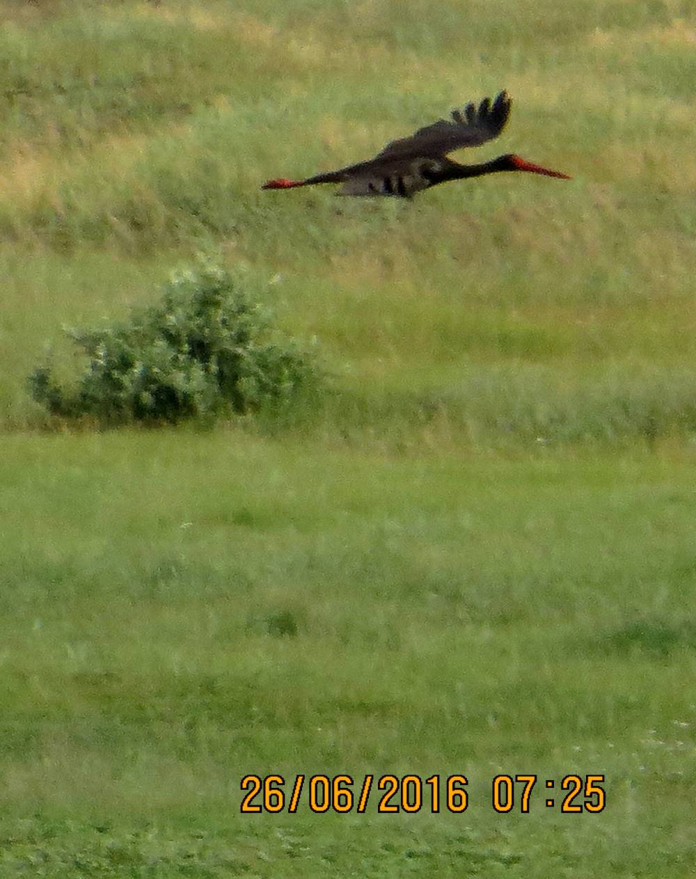 Я и моя бабушка вели поиски чёрного аиста.Мы его нашли и сфотографировали на р. Разбойная в 2 км. от села Заковряшино, Крутихинского района,Алтайского края. [...... read more ]