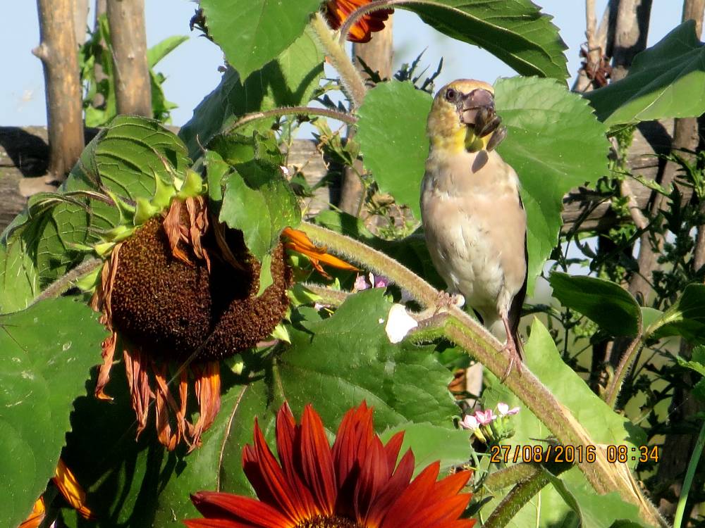 На пороге осень. Воздух пропитан запахами терпких степных трав и осенних яблок, уродившихся в этом году в большом количестве. Дни стоят теплые, светлые, звонкие. Птицы собираются к отлету. Скворцы, грачи и рябинники с большим удовольствием помогают дачникам в уборке урожая, серые вороны рыбачат на берегу водохранилища, воробьи большими стаями кочуют по окрестностям. Не увидела в эти выходные черноголовых чеканов и ласточек- береговушек, желтые трясогузки большой стайкой, отдохнув на проводах, исчезли, заметно меньше стало черных коршунов, [...... read more ]