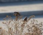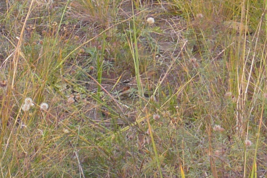 Сегодня была на Лысой горе у пос. Водников в Красноярске. Впервые встретила лапландского подорожника. Там встречались и другие овсянки, скорее всего белошапочные. Только те вспугнутые летели к кустам, а подорожник садился в траву, подобно жаворонку. Ещё он проворно бегал между кустиками ковыля. К сожалению нормально сфотографировать не удалось, было уже темно и птицу заслоняла трава. [...... read more ]