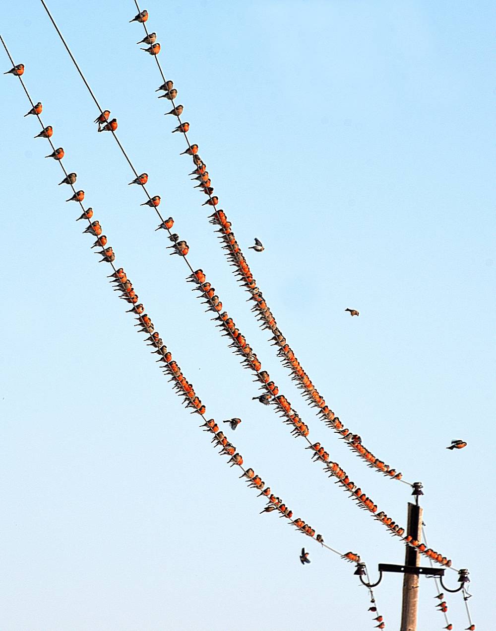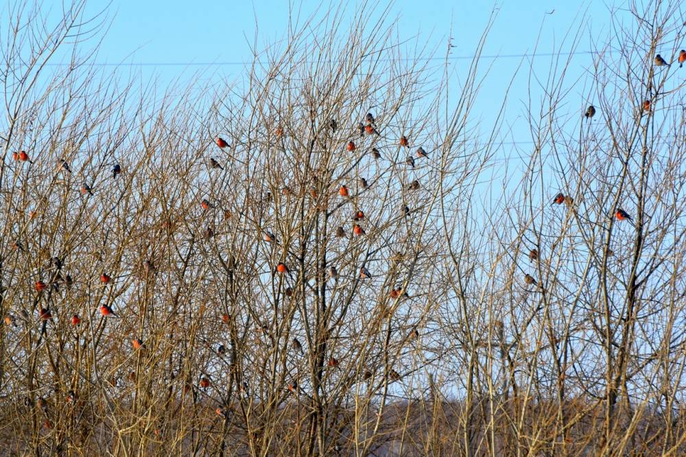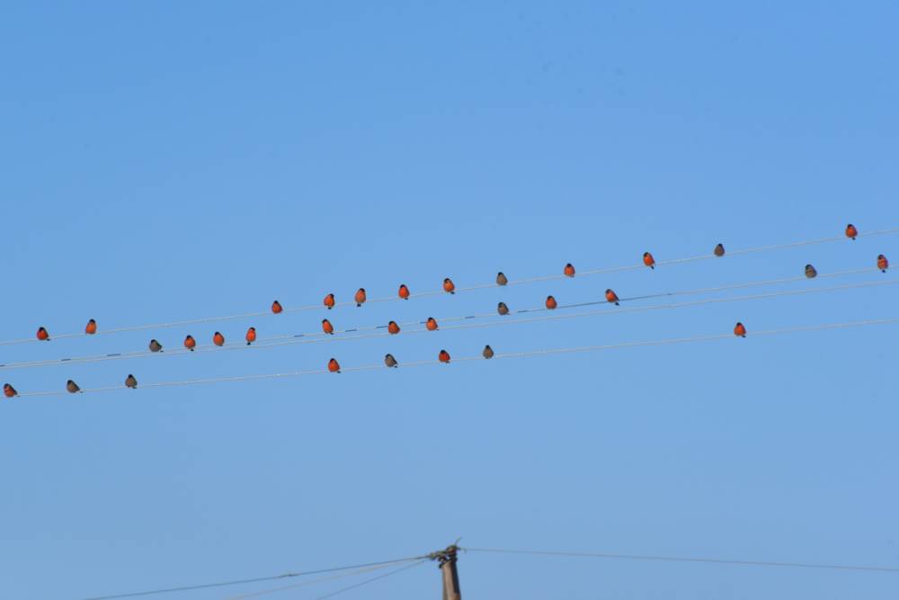 Сегодня днём проезжали небольшую деревню недалеко от Кемерова с красивым названием Лебеди , увидели множество птиц на проводах. Подумали, что воробьи. Но всё же решили проверить. Каково же было наше удивление, когда увидели несметную стаю снегирей. [...... read more ]