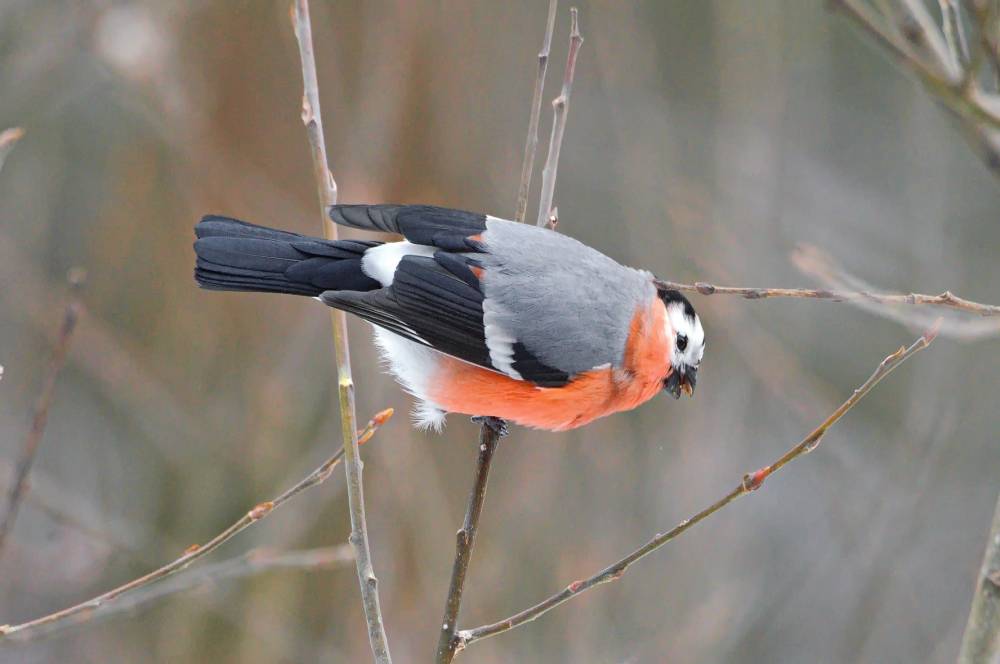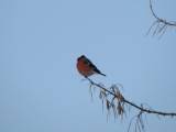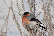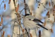 13 января нам повстречался необычный по окраске снегирь. Птица активно кормилась почками ивы. Ещё издалека обратили внимание, что на голове у него явно белое пятно. Максимально сблизившись, с большим трудом, через густые кусты, удалось сделать серию снимков этой птицы. К сожалению, снегирь постоянно находился в гуще веток и большинство снимков замыленные . Но факт белого оперения на части головы запечатлеть удалось. [...... read more ]