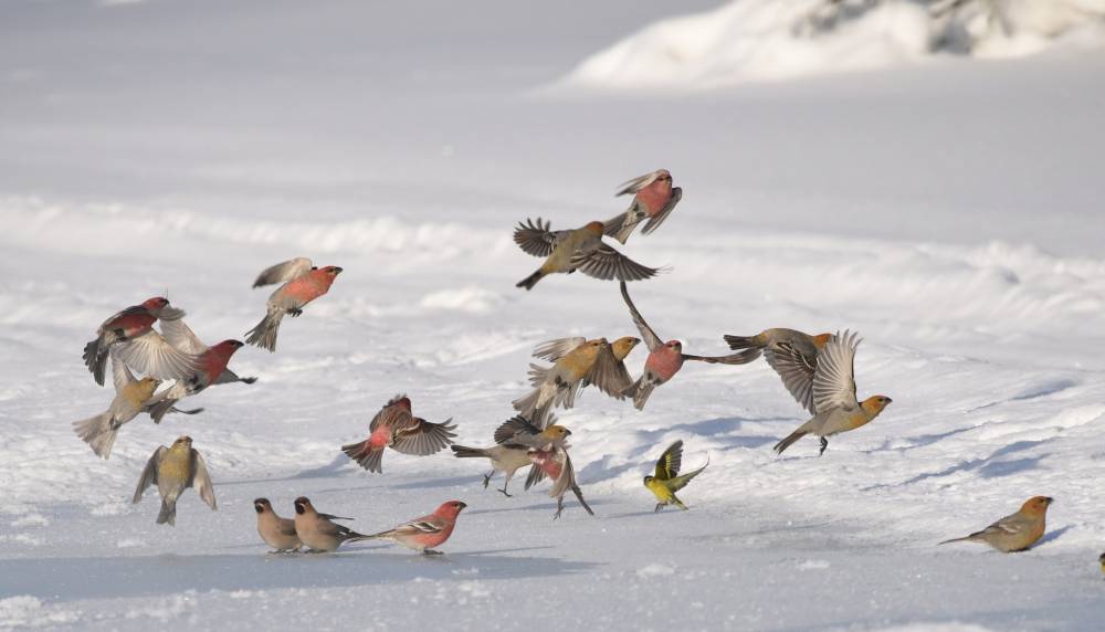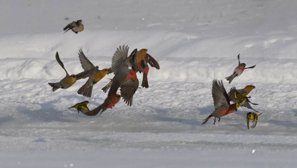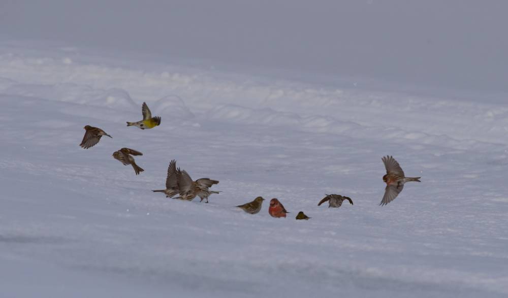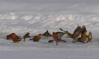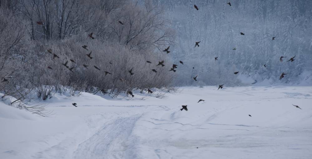 Потеплело. В утреннем полумраке прилетели снегири. Они были что-то не в духе и все время затевали свары. Щуры были какие-то нервные, все время пугались, а потом и вовсе взмыли ввысь и полетели прочь. То, что они улетают насовсем, как-то поняли все птицы. Они стайками вырывались из чащи и понеслись вслед за щурами. Вскоре лес опустел. Повалил крупный снег. На другой день я приехала посмотреть: ледовое зеркало было припорошено снегом и никаких следов. Я пошла проверить мои прибрежные кормушки. Но всюду было запустение, куда-то пропали синицы и поползни. [...... read more ]