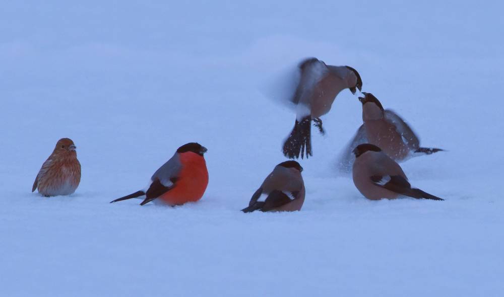 Еще один денек, самый морозный, пожалуй. На рассвете пополз густой туман. Но щурам чем хуже, тем лучше. Присоединились снегири, правда рассеялись в стае. [...... read more ]